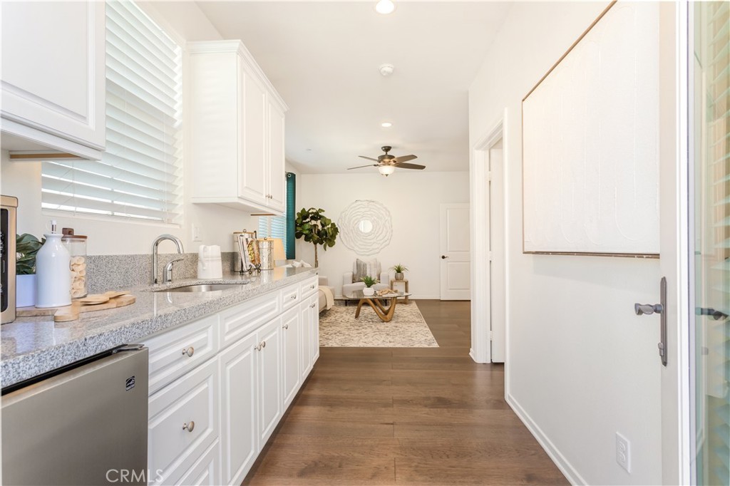 This stunning multigenerational home offers 5 bedrooms, 3.5 bathrooms, and a spacious bonus room, including an attached Multi-Gen suite with its own private entrance. The Multi-Gen suite is thoughtfully designed with a living room, spacious bedroom, kitchenette, large walk-in closet, and stackable washer and dryer—ideal for extended family, guests, or rental potential. The heart of the main home is an upgraded kitchen featuring stainless steel appliances, double ovens, a large granite island, walk-in pantry, and multiple built-ins, all seamlessly connected to the open floorplan and spacious family room. Expansive patio doors lead to a California room overlooking the large backyard, complete with a kids’ play structure and plenty of room to entertain. Energy efficiency is built in with paid solar, while a tandem 3-car garage provides ample parking and storage. Residents also enjoy access to outstanding community amenities including multiple pools, spas, picnic areas, and sports parks. Conveniently located near shopping, freeways, and top-rated schools, this home blends comfort, functionality, and resort-style living.