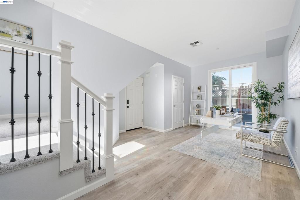 Beautiful townhouse in the highly desirable American High attendance area, also serving Thornton Middle and Warwick Elementary. Built in 2021, this contemporary home offers 3 bedrooms, 3.5 baths, and 1,657 sqft of thoughtfully designed living space with modern finishes throughout. Soaring ceilings and expansive windows fill the interior with natural light, creating a bright and inviting atmosphere. The first level features a versatile bonus room with a half bath and direct backyard access—perfect for a home office, gym, or flex space. The main living level boasts an open-concept living and dining area connected to a gourmet kitchen with premium cabinetry, white quartz countertops, a large island, and stainless-steel appliances—ideal for entertaining family and friends. A bedroom with full bath provides flexibility for guests or multigenerational living. Upstairs, discover two private suites, including a spacious primary with walk-in closet, spa-like bath and a private balcony overlooking the neighborhood. Additional features include an attached 2-car garage, water softener, new paint and carpet, and central heat & AC. Enjoy easy access to Hwy 880/84, Meta, Tesla, shopping, dining, and local parks. Move-in ready!