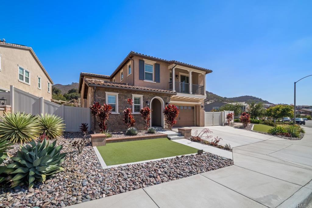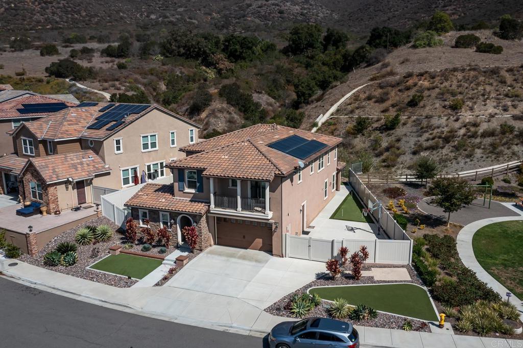 Welcome to one of the largest homes in the Promontory neighborhood of Horse Creek Ridge. This expansive 3,844 sq ft residence offers 5 bedrooms, including 4 with ensuite baths, 6 bathrooms, a spacious upstairs loft, and thoughtful upgrades throughout. Inside, the gourmet kitchen features GE and Café appliances, quartz counters, custom cabinetry, a stylish backsplash, and a butler’s pantry — perfect for everyday meals and entertaining. The open-concept family room with fireplace flows into the large dining space, while luxury vinyl plank flooring and plantation shutters add elegance throughout the first floor. This home also comes with a fully paid 5kW solar system, a two-car garage with tandem space, and rare expanded parking behind a fenced area along with a three-car driveway. Step outside to a private courtyard, drought-tolerant landscaping, and a custom putting green — an entertainer’s dream and golfer’s delight. Living in Horse Creek Ridge means enjoying 7 private parks, a clubhouse with pool and spa, nearby hiking trails including the Monserrat Mountain Trailhead, and a true community feel. With easy I-15 access, you’re just minutes from Fallbrook, Bonsall, and Temecula. Don’t miss this opportunity to own one of the premier homes in Horse Creek Ridge.