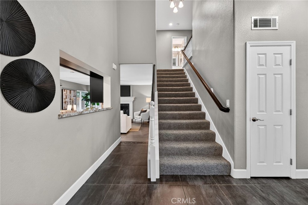 Welcome to this well-maintained 3 bedroom, 2.5 bathroom home located in a desirable Murrieta neighborhood featuring low taxes, no HOA, RV parking, and solar. Positioned on an oversized elevated lot, the home offers added privacy and usable outdoor space. Inside, soaring ceilings and abundant natural light create an open and inviting feel. The floor plan includes formal living and dining areas, a comfortable family room with fireplace, and a custom bar with granite countertops — ideal for entertaining. The upgraded kitchen features stone countertops, stainless steel appliances, ample cabinetry, and a breakfast nook overlooking the backyard. Beautiful top-of-the-line Milgard dual pane windows enhance both efficiency and comfort throughout the home. Upstairs, the primary suite offers a spacious layout, while the secondary bedrooms provide flexibility for guests, office space, or growing households. The expansive backyard includes a large covered patio with plenty of room for entertaining, enjoying the view and ample space for a pool. Additional highlights include gated RV parking and an attached garage. Conveniently located near award-winning Murrieta schools, parks, shopping, and commuter access, this home combines comfort, functionality, and long-term value in this highly sought-after location.