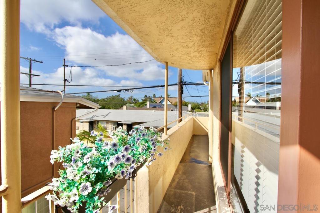 Discover timeless charm in this top-floor, end-unit condo tucked away in a 1939 Art Deco building that was converted to condominiums in 2006. This 1-bedroom, 1-bath residence offers 548 square feet of stylish living space infused with vintage character and modern updates. Original hardwood floors have been beautifully refinished, complementing freshly painted interiors, newly painted kitchen cabinets and updated hardware, and brand-new window blinds. Unique Art Deco details abound—from original doors and hardware to classic light fixtures and a decorative wall niche that nods to the building’s architectural heritage. The spacious layout feels bright and inviting, with generous storage throughout. As an end unit, it shares only one wall and enjoys wraparound exclusive-use outdoor space—perfect for relaxing or entertaining. Additional highlights include a private one-car garage accessed via the alley and free community laundry conveniently located just steps from the unit. Ideally situated within walking distance to Balboa Park, local shops, and restaurants, this condo blends historic allure with urban convenience in one exceptional home.