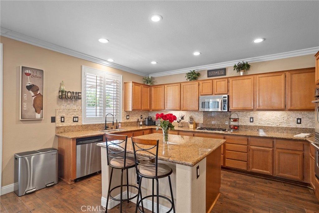 Tournament Hills Home — Beaumont’s Premier Gated Community Located in one of Beaumont’s most desirable neighborhoods, this spacious residence in Tournament Hills offers exceptional comfort, style, and privacy. The property features an inviting in-ground saltwater pool and spa, perfect for year-round relaxation. Recent updates and renovations include designer interior paint, new baseboards, upgraded master bath, and elegant porcelain and wood flooring throughout. The formal dining and living rooms welcome you with abundant natural light, while the custom fireplace and built-in media center create a seamless flow to the open-concept kitchen and family room. The kitchen showcases ample cabinetry, upgraded granite countertops, a center island with bar seating, stainless steel appliances, built-in microwave, and double oven—ideal for both everyday living and entertaining. All bedrooms feature wood flooring, ceiling fans, and granite counters in the bathrooms. The primary suite is enhanced by generous natural light, a spacious closet, and a luxurious en-suite bath with a walk-in shower. Additional highlights include a downstairs guest bedroom, a large upstairs loft perfect for a media or game room, and an attached three-car garage with epoxy flooring. Enjoy the beautifully landscaped front and back yards, complete with a large Aluma wood patio cover equipped with ceiling fans and lighting. Set on a quiet cul-de-sac, this home is just steps from the community lake, offering a peaceful and private retreat in a prestigious setting.