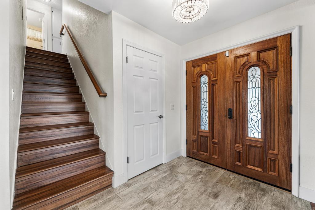 Exceptional 1.13-acre view property offering privacy, space, and resort-style living in the heart of Fallbrook. This 2,153 sq ft home features 3 bedrooms, 2.5 bathrooms, and a dedicated downstairs office. Bamboo flooring, recessed lighting, and a wood-burning fireplace in the family room create a warm and inviting interior. The kitchen is designed for both function and style with black quartz waterfall countertops, lighted soft-close cabinetry, and matching G.E. Café appliances including a French door refrigerator, double oven, 6-burner stove, microwave, and dishwasher. Built-in coffee bar, whole-house water system, and filtered water at the kitchen sink add to the home’s thoughtful upgrades. Outdoor amenities include upper and lower entertaining areas, a 3-level pool, built-in BBQ, and fire pit. The expansive lot provides space for a potential ADU and room for RVs, boats, and recreational toys. Additional features include a permitted 10×10 shed, chicken coop, raised garden beds, and mature fruit trees (fig, apricot, avocado, orange, lemon, plum, peach, and blood orange). 30 owned solar panels, a tankless water heater, unfinished basement for storage, and a 45″ culvert located behind the property along Olive Hill Rd complete the offering. A rare combination of usable acreage, privacy, and flexibility — just minutes from town.