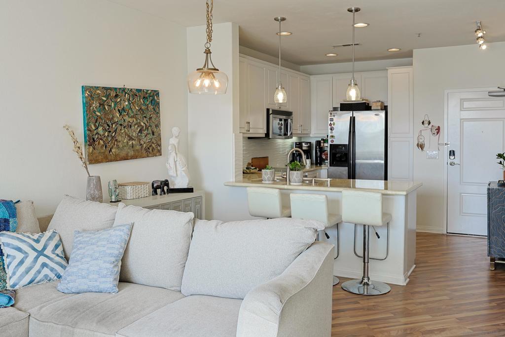 Located in the heart of Carmel Valley, walk across the street to Del Mar Highlands & One Paseo for boutique shopping, fitness studios, city library, parks, cozy coffee shops, and a dynamic mix of restaurants. Experience comfort & convenience in one of Carmel Valley’s most central communities. This 2nd floor unit has an open floor plan with a U-shaped kitchen with tons of counter & cabinet space. Open to the large living room with floor to ceiling windows. The spacious balcony is extra private facing the back of the complex with no neighbors behind. The comfortable bedroom has a nice walk-in closet. The sizable bathroom has even more cabinets for storage, and features a full size washer and dryer. Pell Place is a fully gated & secured community with modern access systems for your guests and deliveries. Experience the exciting amenities including state of the art fitness center, dog run, BBQ area, plentiful EV car charging, putting green, and an active social community with an on-site HOA office. There is 1 assigned gated garage parking spot. Make this unique condo your home and start enjoying the vibrant & active community! Located in the heart of Carmel Valley, walk across the street to Del Mar Highlands & One Paseo for boutique shopping, fitness studios, city library, parks, cozy coffee shops, and a dynamic mix of restaurants. Experience comfort & convenience in one of Carmel Valley’s most central communities. This 2nd floor unit has an open floor plan with a U-shaped kitchen with tons of counter & cabinet space. Open to the large living room with floor to ceiling windows. The spacious balcony is extra private facing the back of the complex with no neighbors behind. The comfortable bedroom has a nice walk-in closet. The sizable bathroom has even more cabinets for storage, and features a full size washer and dryer. Pell Place is a fully gated & secured community with modern access systems for your guests and deliveries. Experience the exciting amenities including state of the art fitness center, dog run, BBQ area, plentiful EV car charging, putting green, and an active social community with an on-site HOA office. There is 1 assigned gated garage parking spot. Make this unique condo your home and start enjoying the vibrant & active community!