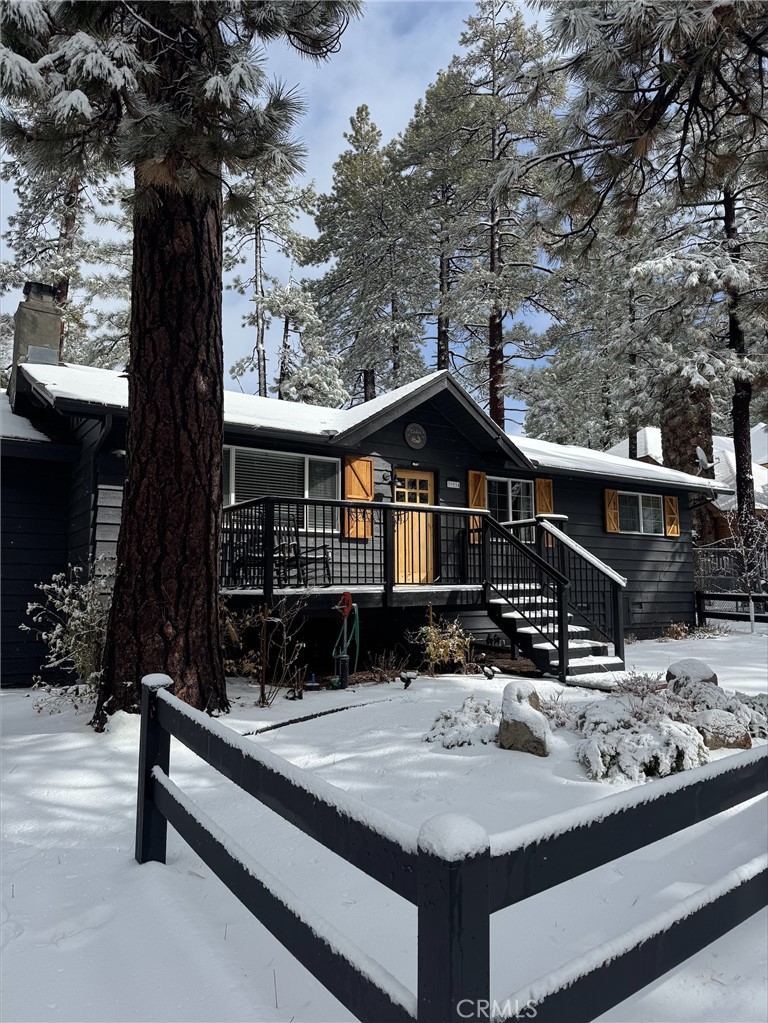 Price improved on this winter ready, professional interior design with a modern European/Cabin chic look. This designer upgraded retreat offers a rare opportunity to own a Big Bear gem w/ massive yard, high-end furniture, and serene surroundings! Imagine fireside mornings, spa nights, and snowy evenings w/ a shuttle nearby to the village and ski resort. The upgrades were done with meticulous care. Features include solid hardwood flooring, and high end, barely used furniture. Home is move-in ready or all set for vacation renting this winter. The light and bright interior is so spacious with cathedral ceilings, fresh paint inside and out. While the inside is amazing, the unique setting is awesome. A huge backyard backs to Camp Tanda-a rare find in Big Bear Lake with an outdoor spa, lovely decking and even views of a Great Blue Heron’s nest. Because of the layout of this home, it feels larger than the square footage. The level sunny setting and one car garage make this the perfect retreat or full time home. It is definitely one of the most unique and desirable pride of ownership homes on the market! Don’t miss this opportunity.