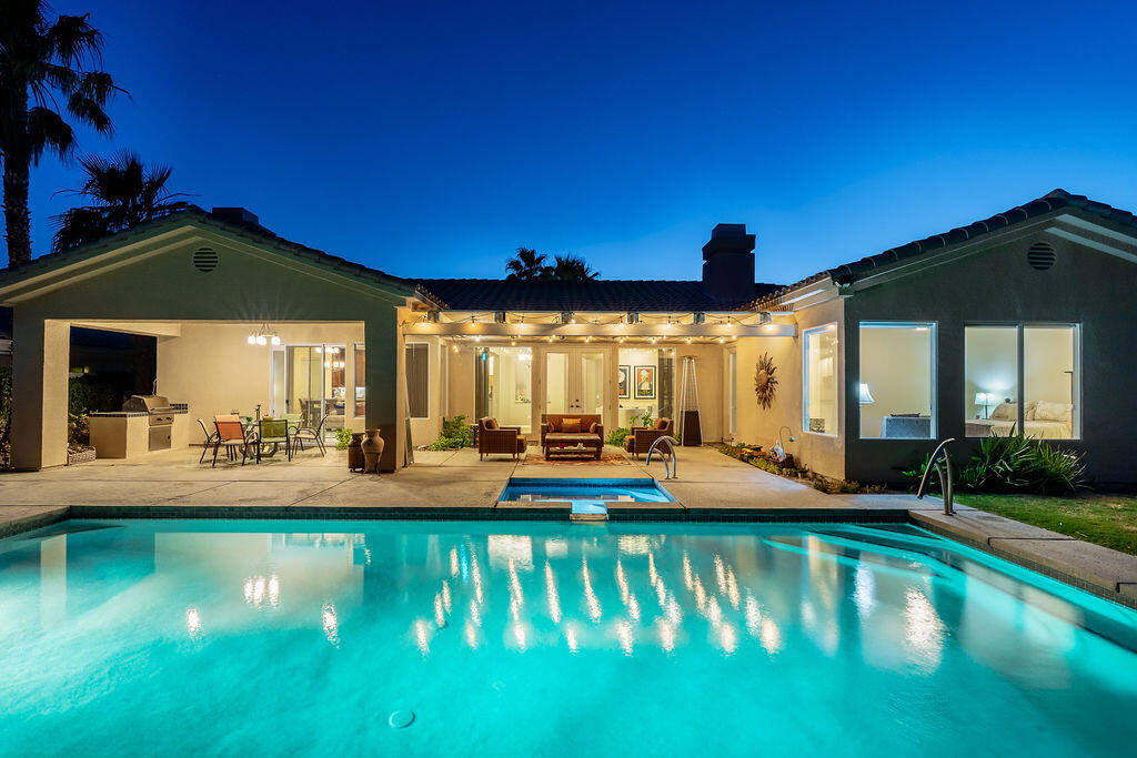 Experience the Epitome of Luxury Living in Victoria Falls, Presenting a stunning 4 bedroom ( the 4th bedroom is an attached casita with a bathroom and entry access of the front courtyard) boasting 3,587 sq ft of elegantly appointed living space, this home has been meticulously updated to cater to the most discerning homeowner. Dual zone HVAC, updated kitchen featuring a top-of-the-line Wolf range, pristine quartz slab countertops, double convection ovens, and a generous walk-in pantry. Host memorable gatherings in the family room, with breakfast dinning area warmed by one of the two fireplaces, adorned with all new plank tile flooring the extends invitingly throughout the home. Enjoy a separate living room, dining room that also features a fire place and out door seating area . Step outside to the sunny backyard, complete with a new Pebble-tec pool and spa, and a warm inviting fire pit area for evening relaxation. Impeccable Lighting with LED lights through out the home. 2 car finished garage with storage + 4 car additional spots in driveway. There is leased solar that is $254.64 a month. Sellers have recently finished cosmetic upgrades by painting a large portion of the interior spaces and upgrading the bathroom and laundry room fixtures giving a contemporary finish. Community tennis courts and gated security.