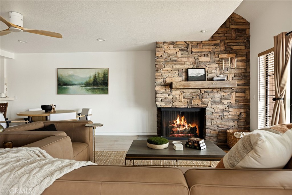 Experience refined lake living in the absolute heart of Lake Arrowhead Village, where the best restaurants, boutique shopping, lakeside concerts, coffee shops, wine bars, and seasonal events are just steps from your front door. This beautifully positioned waterfront condo offers the rare opportunity to live in the middle of it all while enjoying peaceful marina and water views from your own private balcony. Originally designed as a 3-bedroom residence, the home has been thoughtfully reimagined into a spacious 2-bedroom layout to create an expansive open-concept flex space currently used as a secondary lounge with a sleeper sofa, perfectly oriented toward the lake. The design enhances the natural light and sense of openness, while still offering the flexibility to easily convert the space back into a true third bedroom if desired. The main living area blends warmth and sophistication with wood flooring, a striking stacked stone fireplace, and large sliding glass doors that frame the water and open to a private balcony overlooking Village Bay. Morning coffee feels elevated above the trees, and evenings are best spent with a glass of wine while watching boats glide into the marina below. The kitchen flows seamlessly into the dining and living spaces, making it ideal for entertaining after a day on the water or dinner in the Village just a short stroll away. Both bedrooms are generously sized and designed for comfort and privacy, while the primary suite enjoys tranquil tree-top views. Covered garage parking and in-unit laundry add convenience, allowing you to park and truly embrace a walkable lifestyle. For those who want the full lake experience, a half of a double dock in Village Bay is available for additional purchase. Enjoy the ease of walking down to your boat in minutes or driving up for effortless loading and unloading. Spend your days cruising the lake, tying up at waterfront restaurants, and returning home just steps from the Village energy. The ability to combine Village walkability with dedicated dock ownership is a rare and highly sought-after lifestyle opportunity. Whether you are seeking a luxurious weekend escape, full-time residence, or investment property in one of Lake Arrowhead’s most dynamic waterfront locations, this condo delivers location, flexibility, and elevated lake living — all in the center of the action. Lake Arrowhead Village living at its finest.