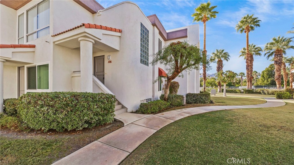 Opportunity knocks! Property is active again because buyer couldn’t perform. Their loss, your gain! This beautiful, turnkey 2-bedroom 2-bath fully furnished condo is located in the sought-after gated La Palme community in Central Palm Springs. This bright and spacious interior location offers two spacious primary suites, one of which leads out to your balcony with beautiful mountain views. Both en-suite bathrooms are full baths with double sinks and have neutral tones. The kitchen features tile countertops, recessed lighting, and has plenty of cabinetry. The dining area is open to the family/living room which also has access to your balcony. This functional floor plan with a lot of natural lighting has an indoor laundry with a stackable washer and dryer, and a newer HVAC system. La Palme offers many amenities including six sparkling pools and spas, gated entry, three tennis courts, and beautifully maintained grounds. The HOA covers the roof, basic cable, water, trash, Wi-Fi, and has beneficial electric vehicle charging stations. Convenient location, minutes from downtown Palm Springs, the Palm Springs Airport, the Convention Center and Spa Casino. Condo is not FHA approved. Let’s get you home in time for summer!