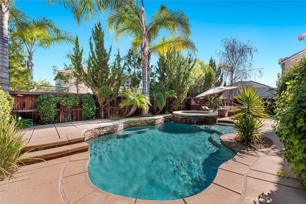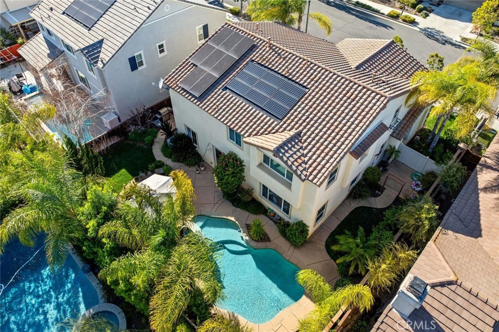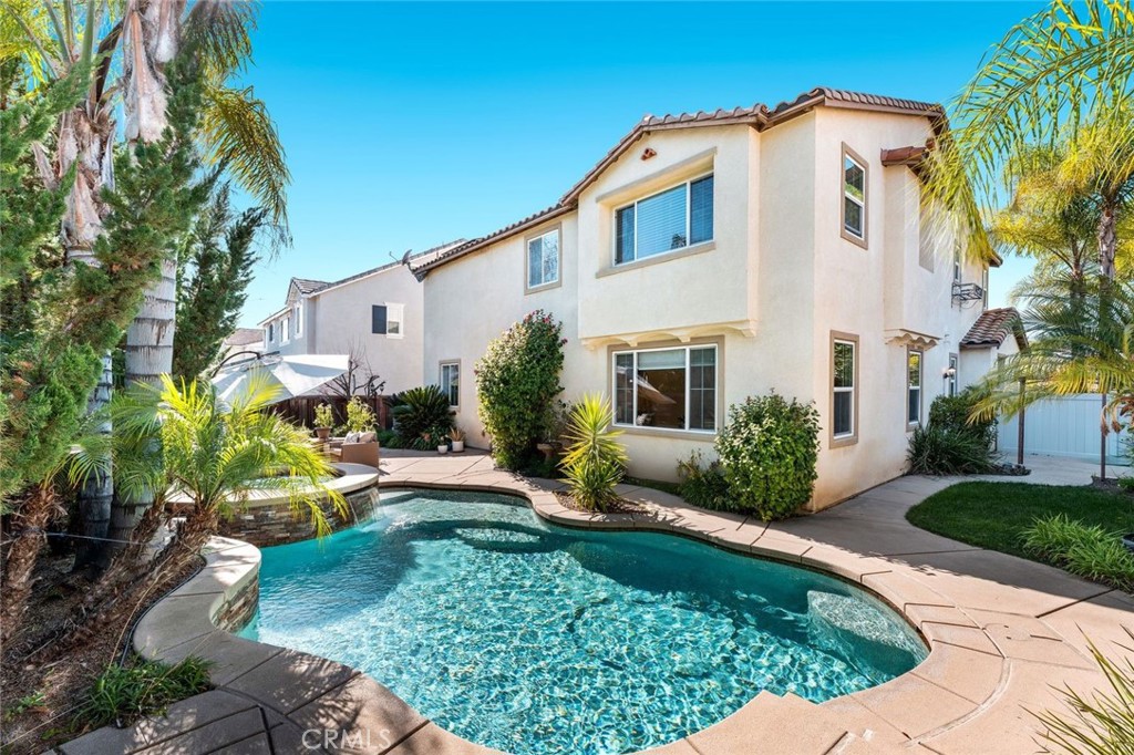 Looking for an immaculate POOL home in the HARVESTON COMMUNITY? Look no further! The front porch greets you with a warm welcome, a perfect place to sit and have coffee or tea in the morning. As you enter the home through the Larson storm door you will find upgraded tile flooring. The main floor bedroom offers a CUSTOM barn door and custom laminate flooring. The gourmet kitchen boasts upgraded cabinets, lighting throughout, 8′ upgraded doors, upgraded tumbled stone back splash, walk-in pantry and beautiful granite counters. The kitchen opens up to a large living area with plenty of room for family and friends. As you step outside a gorgeous custom pool awaits. This backyard is perfect for entertaining and backyard BBQ’s. This “fun-pool” has an 18″ swim step and is only 4.5′ deep, perfect for volleyball and other games in the summer! Back inside, the staircase features a Custom iron railing which leads to the primary suite, 2 addt’l bedrooms, large linen closet and loft which can also be converted to another bed upstairs. The primary suite is large with a ton of natural lighting and a huge walk-in closet. The spa like primary bath features a large soaking tub, walk in shower, 2 sinks at the vanity and a HUGE walk-in primary closet! There are 9 solar panels on the house completely paid for and 8 additional panels that are financed(installed in 2023)the payment for financed solar is listed under private remarks. Conveniently located in the heart of Temecula this home is close to freeways, schools and shopping! Harveston features a gorgeous community lake, club house, pool and spa, paddle boats, catch and release fishing and so much more. This home shows as a model home! HURRY!