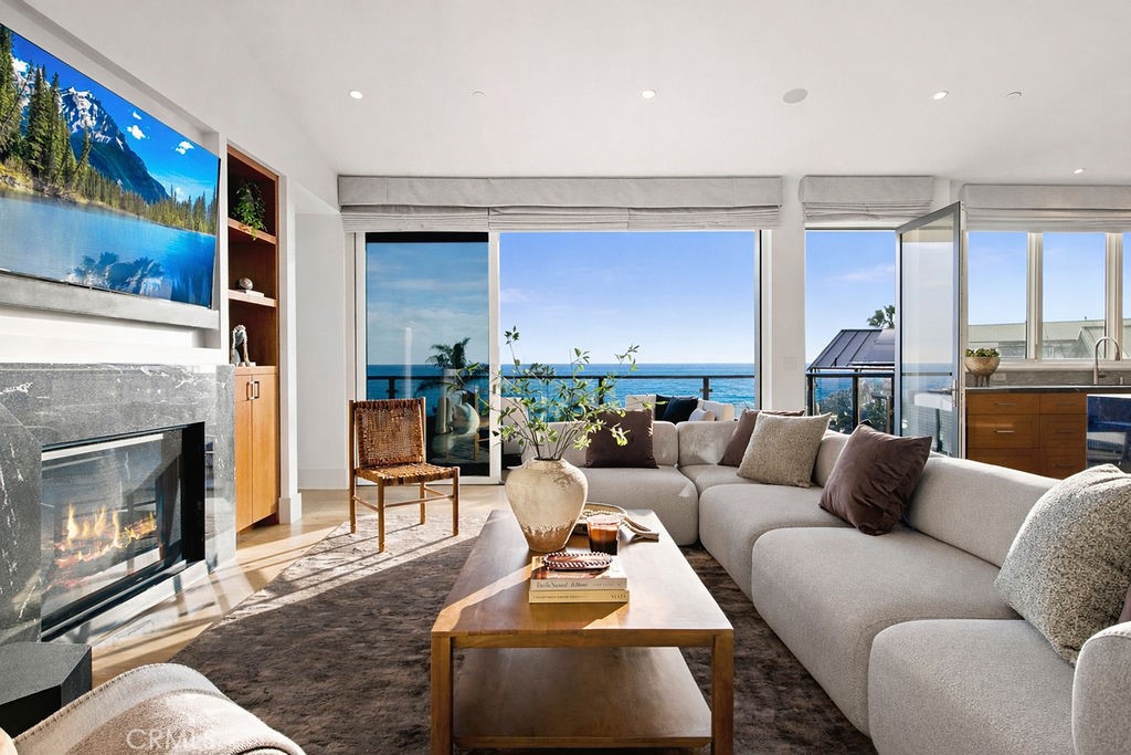 420 Emerald Bay | Laguna Beach Single-level living with no interior steps on the main level, featuring a primary suite on the main floor. Panoramic ocean, Catalina Island, and sunset views. Nearly new 2022 custom-built home in guard-gated Emerald Bay. Experience elevated coastal living in this custom residence designed by Laidlaw Schultz Architects and built by Tony Valentine Construction, offering 4 bedrooms, 4.5 bathrooms, and a highly desirable floor plan that lives like a single-level home. The main level includes the primary suite, kitchen, dining, and great room—all with no interior steps—creating rare convenience in a coastal setting. Walls of Fleetwood floor-to-ceiling glass open to a spacious ocean-view deck, seamlessly blending indoor-outdoor living for entertaining and enjoying year-round sunsets and ocean breezes. The chef’s kitchen features a large center island, Thermador appliances, and direct connection to the main living areas. Wide-plank white oak flooring and warm contemporary finishes complete the home. The primary suite (main level) offers ocean views, a walk-in closet with custom built-ins, and a spa-inspired bath with soaking tub and walk-in shower. The lower level includes: Three secondary bedrooms and bathrooms Bonus/recreation/media area Office or flex space Separate room ideal for a gym or studio Additional features: Savant smart home system Solar power Reverse osmosis water filtration Private elevator A private rear yard with turf lawn adds rare outdoor space within Emerald Bay. Includes a 2-car garage plus parking for a third vehicle. Emerald Bay offers: Private white-sand beach Community pool Six tennis courts Parks 24-hour guard-gated security A rare opportunity to own a nearly new ocean-view home that lives like a single-level residence in one of Laguna Beach’s most sought-after communities.
