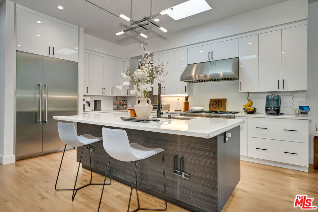 Situated south of Ventura Blvd in one of Sherman Oaks most coveted enclaves, this newer modern residence is a statement in refined design and effortless California living.Beyond its clean architectural lines, the home opens to expansive interiors defined by soaring 10 ceilings, oversized bedrooms, and walls of glass that flood the space with natural light. The living room is both dramatic and inviting, anchored by a sleek fireplace and frames by large glass doors that look out to the private backyard. The kitchen features custom tilework, premium finishes and generous walk-in pantry. The dining area is designed for both intimate evenings and large-scale entertaining as this open layout connects beautifully to the main living spaces.Five generously sized bedrooms include two exceptional primary suites, each feature spa-inspired bathrooms with custom tile, luxurious finishes and abundant closet space. All offering idea flexibility for both families, guests, or dedicated work from home space. Outdoors, the manicured grounds feel like a private resort, complete with a sparkling pool and spa. There’s amble space for dining and lounging under the California sky.Moments from Ventura Boulevard’s premier dining, boutiques, and top-rated schools. Easy access to the Westside makes this residence a strategic investment in location, stability and desirability.