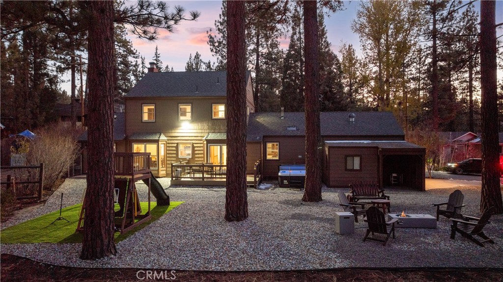 Beautiful and spacious mountain home at 42554 Juniper Drive offers approximately 2,330 sq ft of living space with 4 bedrooms, 3 full bathrooms, and 1 half bath, designed for comfort, style, and relaxation. The home features an open and inviting layout with multiple living areas, a large kitchen, and bright interior spaces throughout. A separate game room provides the perfect space for entertainment, while the private hot tub offers a spa-like experience year-round. Outside, the property includes a large driveway and a 3-car garage, providing plenty of parking and storage. Set among mature pine trees in a quiet Big Bear Lake neighborhood, this home delivers a refined mountain lifestyle just minutes from the lake, ski resorts, dining, and shopping.