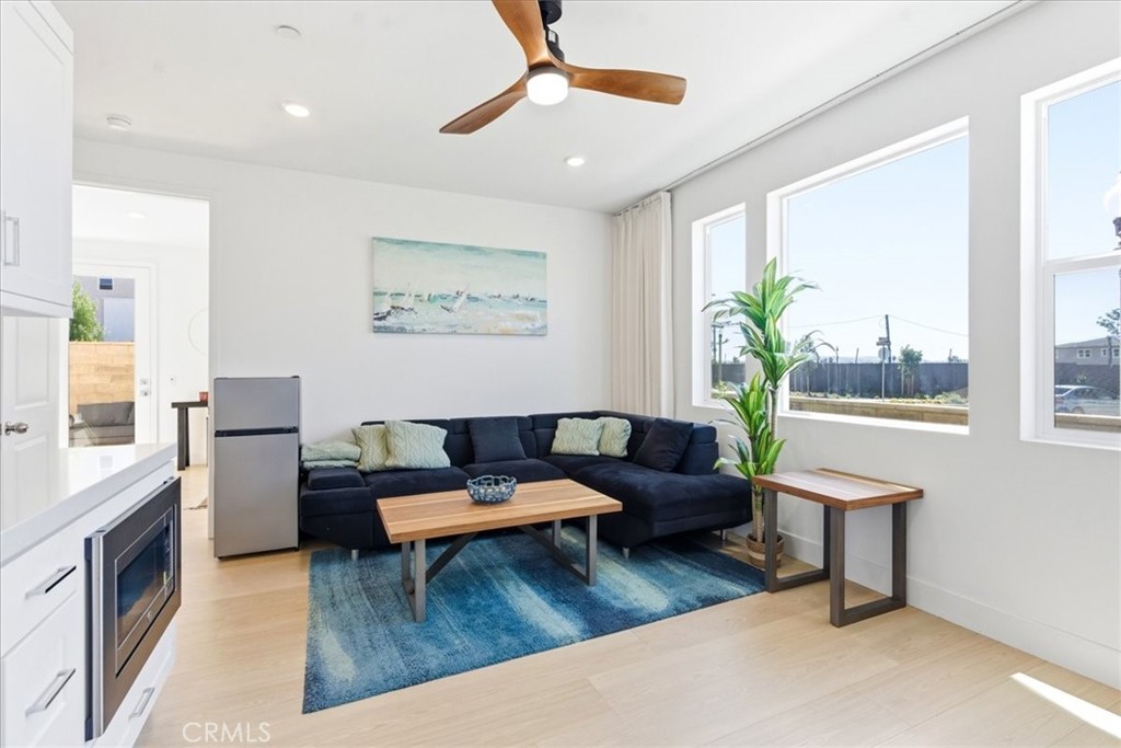 Rarely available in Irvine’s Great Park, this detached corner-lot home showcases Lennar’s coveted Next Gen® “Home Within a Home” design, featuring a private-entry first-floor suite, rare three-sided open exposure, abundant natural light, elevated upper-level outlooks, and the highly desirable advantage of a full driveway. A standout feature of the property is the thoughtfully designed first-floor Next Gen suite, complete with its own entrance, bedroom, bathroom, living area, kitchenette, laundry, and outdoor space. Ideal for multi-generational living, extended guests, an independent family member, or a truly separate office or studio, it offers a level of flexibility rarely found in Irvine. The main residence is thoughtfully designed with 10-foot ceilings, an open-concept layout, and well-integrated living, dining, and kitchen spaces that feel both refined and functional. This floor includes a versatile secondary bedroom. Designed for ultimate privacy, every bedroom in this residence features its own dedicated bathroom, ensuring comfort for every family member. The upper levels are a standout, with the top floor enjoying beautiful city-light and mountain views that add a rare sense of openness and visual appeal. You will find your peaceful retreat in the spacious loft, the luxe owner’s suite and another guest bedroom on the third floor. Thoughtful upgrades and tasteful design touches throughout further elevate the home’s comfort, style, and overall presentation. Additional highlights include solar, EV charging, water filtration, and the sought-after combination of a full driveway and 2-car garage. Ideally located in the Luna Park and just minutes from Irvine Spectrum, the Canopy, and major commuter routes, this is a rare opportunity to own one of Great Park’s most compelling and versatile floor plans.
