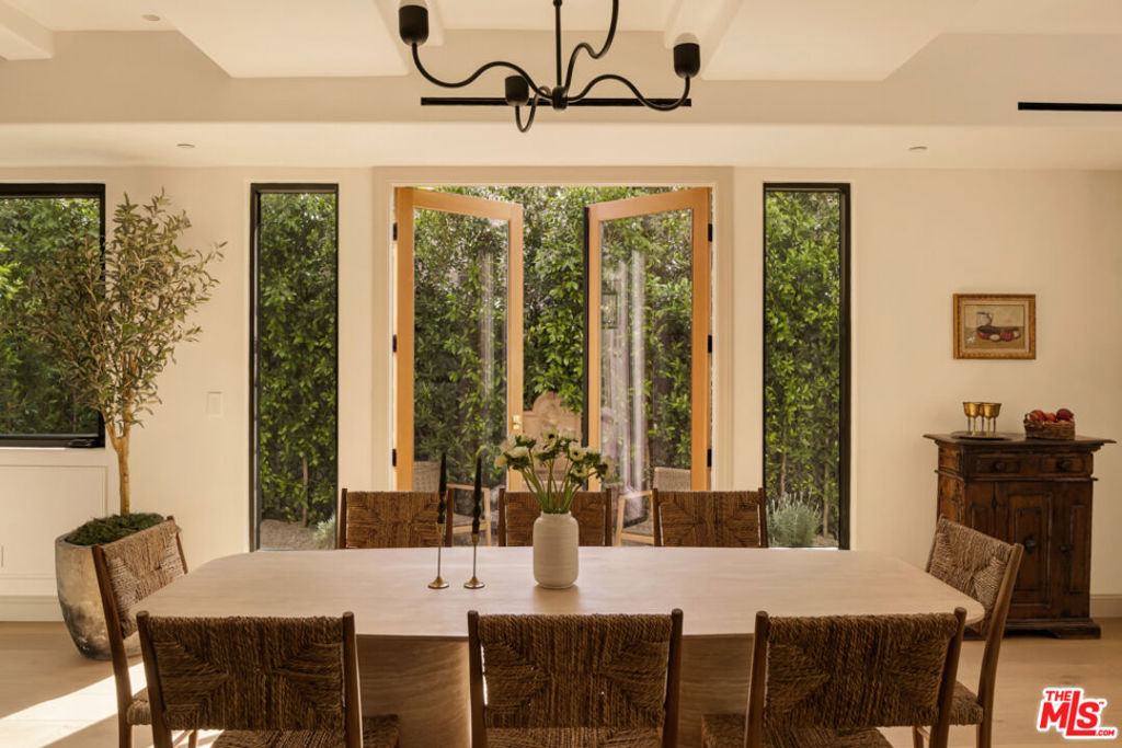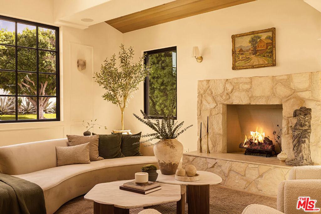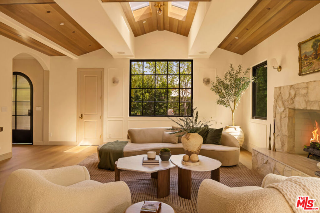 Set within one of Beverly Grove’s most desirable pockets, this Spanish-inspired residence blends timeless architecture with warmth and privacy, offering the perfect home to unwind and escape the city or host with presence and style.Upon entering, vaulted cedar ceilings immediately set the tone, filling the home with architectural character and natural warmth. Sunlight moves effortlessly throughout, creating an elegant living space designed as both an architectural showpiece and a peaceful place to call home. While open and expansive, the home is thoughtfully designed with intimate pockets for moments of retreat.Expansive pocket doors open to a serene courtyard, creating seamless indoor-outdoor flow into the backyard, where a grassy lawn and lush landscaping around the pool create a transformative setting that transports you to a place of peace while remaining in the heart of the city. The pool house doubles as a private theater with a concealed screen that descends from the ceiling, effortlessly transforming the space into a cinematic retreat or entertaining room.The primary suite provides a peaceful sanctuary. Enter the dramatic, beautifully designed spa-like bathroom, where every detail invites you to unwind, including the added comfort of a steam shower. The spacious walk-in closet was designed to begin each day with comfort, ease, and intention.Above it all, a rooftop deck captures breathtaking sunsets framed by palm trees, distant mountains, and panoramic 360-degree views of the city.A rare balance of architectural integrity, tranquility, and soul, this residence offers a living experience that feels both grounding and extraordinary.