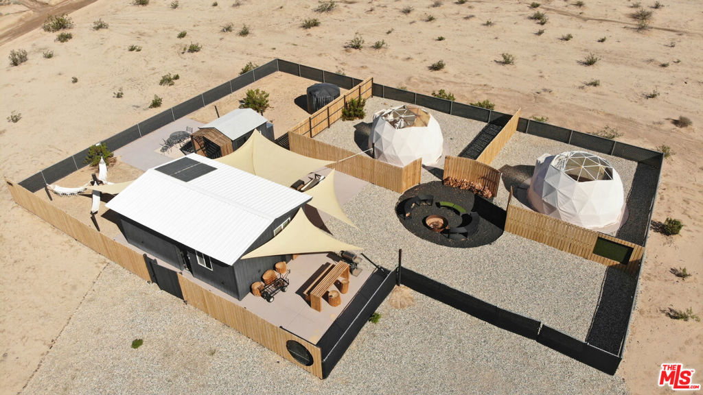 Experience desert living at its finest with this beautifully designed, fully fenced retreat in the heart of Twentynine Palms. This turnkey property features a stylish modern cabin paired with two geodesic domes, offering exceptional versatility for personal use, guest stays, or creative space. The outdoor areas are thoughtfully crafted for relaxation and entertainment, including a custom fire-pit lounge, shaded gathering zones, hammocks, outdoor dining, and a BBQ station. Inside, the cabin showcases a sleek contemporary design with an open layout, upgraded finishes, and a cozy lounge area. Set on a spacious lot with unobstructed mountain and desert views, this property provides privacy, comfort, and a true escape into natureall just a short drive to Joshua Tree National Park, local restaurants, shops, and the Marine Base. A rare opportunity to own a one-of-a-kind desert oasis.