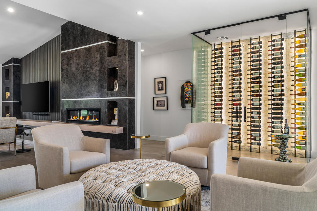 Discover your Shangri-la in this truly turnkey move-in home with private courtyard pool. Yes, every item from furniture to electronics to golf cart to wine room contents to cookware isINCLUDED. Seller retains only select original artwork. This total home renovation (2024) is offered complete with all furnishings thoughtfully curated and purchased new to mesh seamlessly with the easy living desert motif. Enter the double entry doors and you’ll say a definite ‘WOW’ to the fresh kitchen and quartzite counter tops with ‘waterfalls’ on each side. Stainless steel appliances include professional grade double refrigerator/freezer combos, six-burner gas range with two ovens and overhead exhaust hood, dishwasher, microwave and built-in commercial ice maker. The sleek custom Bianco Gloss cabinetry package elevates the entire kitchen to a level seldom seen in this price range. Interno Dune large format Italian porcelain tile flooring throughout the entire home transitions to the expansive outdoor patio featuring triple fairway golf and mountain views.The primary bedroom suite is reminiscent of resort style living with massive zero entry dual shower, floor-to-ceiling 48” x 48” wall tile complimented with Dolomite Italian floor tile. The second and third bedrooms open to the courtyard pool offering privacy in distinctly separateareas of the home. If you need more evidence this home is a ‘can’t miss’ step into the generous flex room with extra storage that’s perfect for a second bedroom junior suite or office.