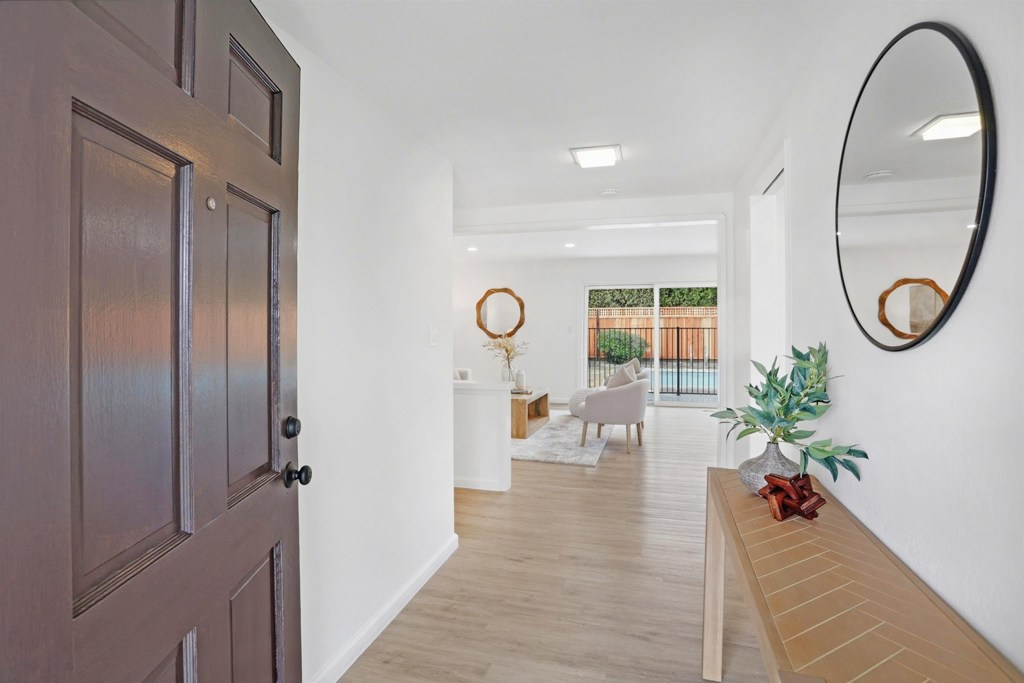 Tucked into the highly desirable Glenmoor neighborhood, this gorgeous single-story home offers the perfect blend of location, space and modern upgrades you’ve been looking for. This approx 2,202 sqft home has an ideal floor plan, complete with a sprawling living room, newly updated kitchen, formal dining area, family room and two bedrooms with en suite bathrooms; a spacious primary suite and a private junior suite perfect for guests or multigenerational living. The beautifully updated kitchen has quartz counters, custom backsplash, timeless white cabinetry and stainless steel appliances including a gas range. Enticing features include LVP flooring, recessed lighting, new exterior fences, freshly painted interiors and exterior. The front yard has new lawn and refreshed landscaping, adding to the home’s inviting appearance. The picturesque backyard features an in-ground pool and a large patio- ideal for outdoor gatherings with loved ones. This home is in an excellent location, walking distance to great schools, community parks, playgrounds, tennis courts & pools. Perfect for commuters, nearby 880, Dumbarton Bridge, BART & Centerville Station. With its blend of upgrades & classic charm, this move-in ready home has it all- don’t miss the opportunity to call this Glenmoor gem yours.
