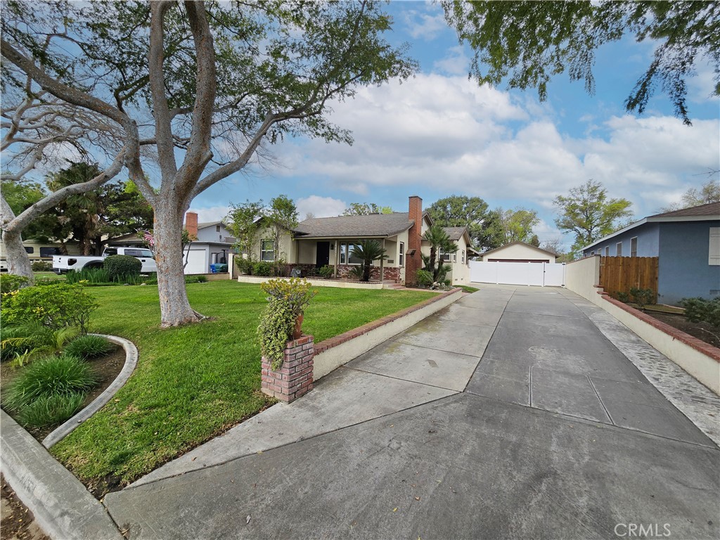 **Stunning Mid-Century Home in Riverside’s Coveted Magnolia Center** Nestled on a serene, tree-lined street in the highly sought-after Magnolia Center neighborhood of Riverside, this timeless 1949 home seamlessly blends classic charm with modern upgrades. Boasting exceptional curb appeal, the property features a spacious lawn, an extended concrete driveway, and a charming covered front porch that evokes a sense of nostalgia and warmth. Inside, the meticulously maintained, **turnkey** home offers a bright and inviting ambiance. The living room is highlighted by an elegant fireplace, while the spacious dining area effortlessly connects to both the remodeled kitchen and the backyard, creating an ideal space for entertaining. The **completely renovated kitchen** showcases a stylish island, granite countertops with a full tile backsplash, custom hardwood cabinetry, and premium appliances, including a stainless steel French-door refrigerator. A dedicated laundry room with backyard access includes a washer and dryer set for added convenience. Spanning approximately **1,510 square feet**, this thoughtfully designed single-story home offers three well-appointed bedrooms and two **fully remodeled** bathrooms. The primary suite is a true retreat, featuring a custom built-in cabinet, a luxurious marble vanity with dual sinks, and a beautifully tiled shower with a built-in seat. Modern upgrades enhance both comfort and efficiency, including **new woodgrain luxury vinyl plank flooring**, custom white wood blinds, designer paint, and graceful interior archways. Additional enhancements include **central air conditioning, a smart Honeywell thermostat, PEX piping, a tankless water heater, an attic fan, and upgraded roofing and windows.** Step outside to the expansive **covered patio**, complete with three ceiling fans, offering the perfect setting for outdoor entertaining. Garage is completely fenced off from the property and not included as part of the lease although you have full use of the long driveway. Ideally located just a short stroll from Mountain View Park, this move-in-ready home provides a **peaceful residential atmosphere with convenient access** to Riverside Plaza, downtown Riverside, the historic Mission Inn, and the University of California, Riverside.
