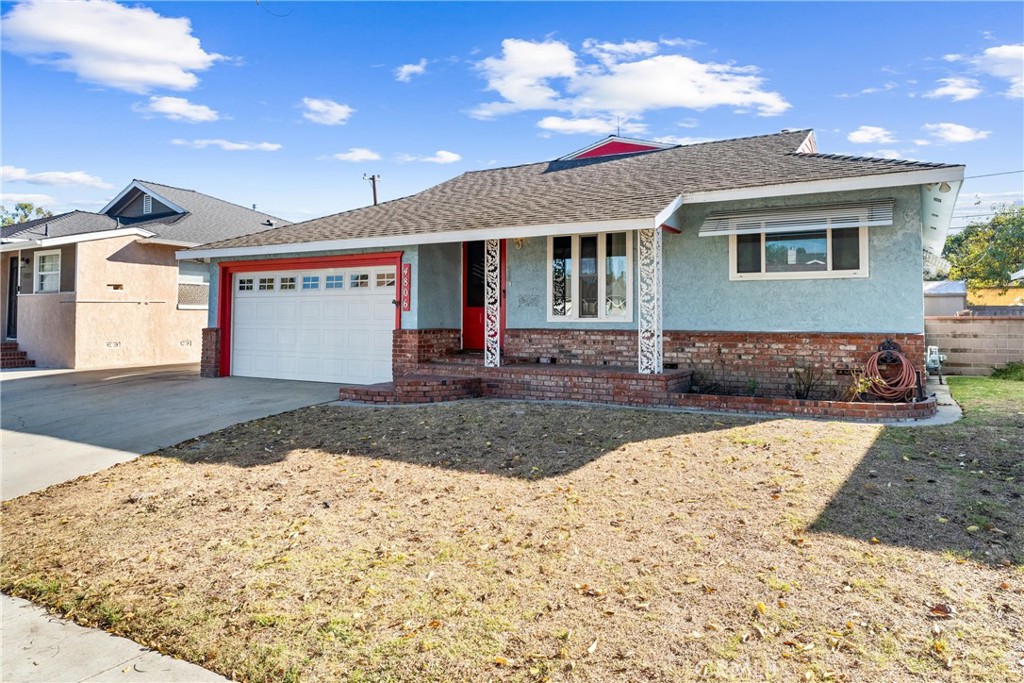 Welcome to this charming and generously sized home located in the desirable city of Lakewood. As you arrive, you’re greeted by a lovely mature tree in the front yard and a cozy front porch—perfect for relaxing and enjoying the neighborhood. Step inside to a warm and inviting living room. To the right, you’ll find two nicely sized bedrooms with a full bathroom conveniently situated between them. Just behind the living room is a spacious kitchen that opens up to an expansive great room featuring a classic brick fireplace and soaring vaulted ceilings—ideal for entertaining or relaxing with family. Tucked away at the back of the home, to the right of the great room, is the private primary suite complete with a full en-suite bathroom, offering a peaceful retreat. From the great room, sliding doors lead out to a covered back patio—perfect for outdoor dining or simply enjoying the fresh air. The backyard also includes a handy shed for extra storage. The home does need a little TLC, making it a great opportunity to add your personal touches and build equity. With a solid layout and great bones, this property is just waiting for someone to make it shine. The home also features a 2-car attached garage, a giant attic and is conveniently located near retail stores, restaurants and major freeways, making for an easy commute. Don’t miss your chance to make this wonderful Lakewood habitat your own!
