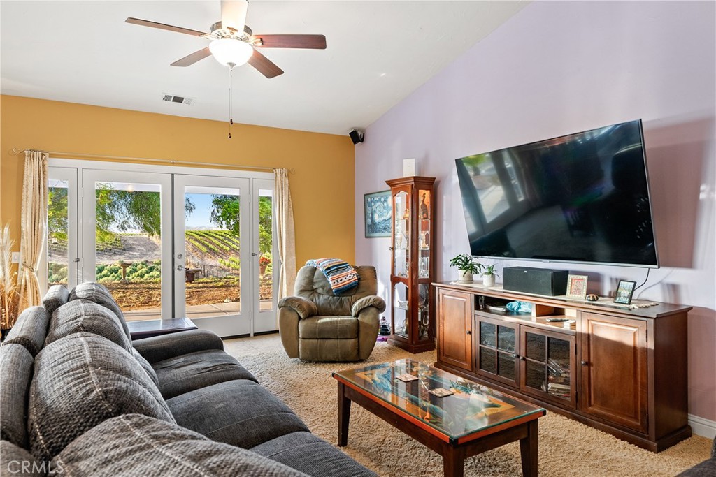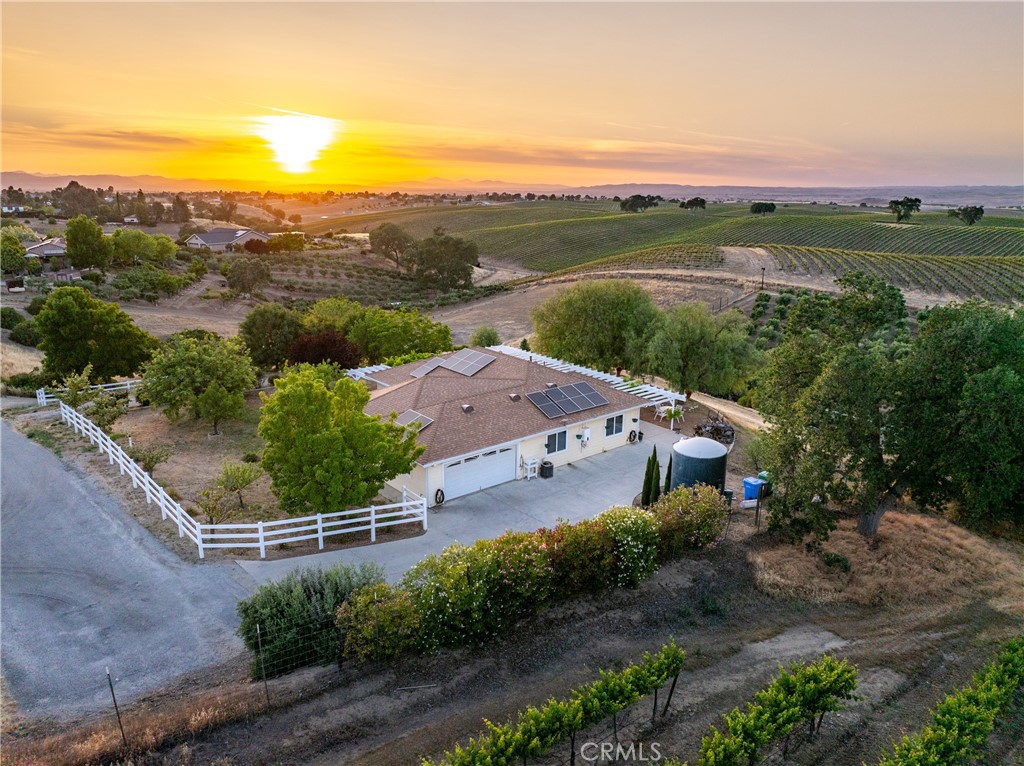 Welcome to 5015 Stagg Hill Place, a wine country retreat located at the end of a road in the Ground Squirrel Hollow community of Paso Robles. Set on 2+/- acres, this stunning 4-bedroom, 2-bathroom home, built in 2005, offers 1,658+/- sqft of spacious, comfortable living. Upon entering, you’ll be greeted by an open floor plan designed to capture the beauty of the property’s west side vineyard and northern orchard views. The kitchen, thoughtfully positioned overlooking both the living and dining rooms, allows for entertaining. French doors from the living room lead directly to the backyard, providing indoor-outdoor living amidst the breathtaking backdrop of your own private Italian olive orchard, fully fenced and irrigated. The generously sized primary suite is a tranquil haven, featuring French doors that also offer direct backyard access. Its luxurious ensuite bathroom boasts a jetted soaking tub with stunning views, dual sinks, and a convenient step-in shower. Outside, enjoy a multitude of opportunities for relaxation and entertainment on the spacious patio overlooking your acreage. Dual driveways—a dirt driveway on the east and another driveway on the west—provide convenient access to the orchard and barn, currently utilized as a workshop for orchard management. Additionally, the front driveway area offers ample space for potential RV or boat storage. Completing this picturesque property is landscaped front yard, equipped with an automatic drip irrigation system. There is also a solar system that may offer efficiency and sustainability. This exceptional Paso Robles property blends country charm with modern comforts. Don’t miss your chance to call it home!