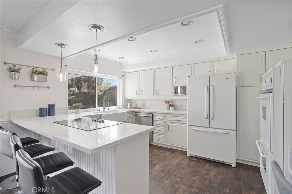 Welcome to this beautifully updated single story home nestled in a quiet, family friendly neighborhood in Placentia. This thoughtfully remodeled residence offers 4 bedrooms and 2 bathrooms on a generous lot, blending classic character with modern comfort. Step inside to a bright and inviting floor plan featuring recessed lighting, wood tile flooring, crown molding, and a cozy living room with a fireplace that flows seamlessly into dining and kitchen areas, creating an ideal space for everyday living and entertaining. An updated kitchen features quartz countertops, farmhouse sink, breakfast bar seating, abundant cabinetry, and quality appliances, making it perfect for casual meals or hosting guests. Each bedroom offers comfortable space and flexibility for family, guests, or home office use, while primary suite includes a private bath with tasteful finishes. A private backyard provides a peaceful retreat with covered patio, lush landscaping, and plenty of room to relax or entertain. Additional highlights include two car garage with epoxy flooring and ample driveway parking, along with major upgrades such as new HVAC, updated plumbing, sewer line, electrical panel, and security system, making this home truly move in ready. Convenient location near shopping, dining, parks, and easy freeway access, within award winning Placentia Yorba Linda Unified School District, creates a rare opportunity to own a turnkey home in one of North Orange County’s most sought after communities.