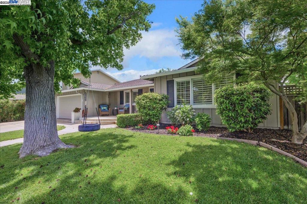 Welcome to this tastefully renovated, north-facing Holiday model nestled in Pleasanton’s highly desirable Birdland neighborhood. Inside, you’ll find glistening hardwood floors paired with brand-new textured nylon carpet, blending classic charm with modern comfort. The remodeled kitchen is a standout, featuring stainless steel appliances, including a professional-grade Viking gas range, refrigerator, microwave, and dishwasher—perfect for everyday living or entertaining. French doors lead to a versatile front room with a custom built-in cabinet, ideal as a home office, study, or playroom. The formal dining room flows seamlessly into the kitchen and spacious family room, creating a warm, open layout. Step into the private backyard retreat, complete with a solar-heated saltwater pool, low-maintenance aluminum arbor, and lush lawn—perfect for entertaining friends and family. Energy-saving features include leased PV solar, dual-pane windows with plantation shutters, recessed LED lighting, newer HVAC, and upgraded attic insulation. Additional conveniences include an indoor laundry area with high-efficiency washer/dryer, built-in garage cabinetry, and a 6×8 Tuff Shed. Stylish, functional, and move-in ready—this home checks every box!