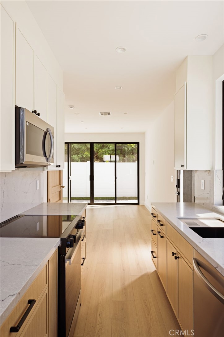 Introducing a luxurious, newly constructed 2-story ADU for lease in the highly sought-after Woodland Hills neighborhood, just north of Ventura Boulevard and adjacent to Walnut Acres. This stunning residence offers a perfect blend of modern elegance and everyday comfort, featuring open-concept kitchen, dining, and family room area. The interior is adorned with wood-look laminate flooring, recessed lighting, and gorgeous contemporary finishes throughout. The thoughtfully designed layout includes abundant built-in storage, custom cabinetry in both the kitchen and bathrooms, and the convenience of in-unit laundry. The gourmet kitchen is equipped with brand-new stainless steel appliances—including a refrigerator, dishwasher, and oven—alongside sleek countertops and ample cabinet space. A sliding glass door leads to a private backyard oasis, ideal for relaxing or entertaining guests on the patio. This exceptional home offers the perfect blend of luxury and location, just moments from Westfield Mall & Village, Calabasas Commons, Warner Center, top rated shopping, dining, and entertainment to also include being close to the 101 freeway. Available now for immediate occupancy – a truly refined living experience awaits in one of Woodland Hills most sought after neighborhoods!