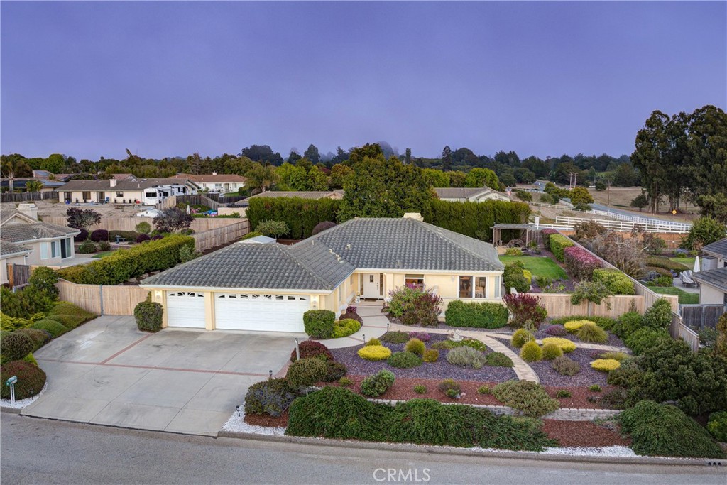 Welcome to Redtail Meadow Estates – A Peaceful Single-Level Retreat in Arroyo Grande’s Coveted Neighborhood This lovingly maintained, Greg Nester-built home is on the market for the first time in 27 years! Situated on a generous .46-acre level lot, this single-story gem offers 2,348 sq ft of thoughtfully designed living space with no steps, perfect for comfort and accessibility. The beveled glass front door and sidelights set the tone for timeless elegance. Inside, you’ll find tile flooring, wide hallways, and vaulted ceilings that create a spacious, light-filled atmosphere. The bright kitchen features a large Corian island, abundant cabinetry with pantry, stainless steel appliances, RO system, built-in desk, and garden window. A charming dinette with bay windows and French doors leads to a private front patio—ideal for your morning coffee. The kitchen flows into a formal dining area with slider to the backyard patio, and an inviting living room with a stone gas-start fireplace for cozy evenings. The primary suite boasts double-door entry, vaulted ceilings, two closets (one walk-in with built-ins), and backyard access to the spa. The en-suite includes tile counters, double sinks, a heated soaking tub, seamless glass shower, and a wall of mirrored cabinetry. Two additional bedrooms, a full guest bath with dual sinks and privacy layout, and a well-equipped laundry room with sink, cabinets, and included washer/dryer complete the interior. The oversized 3-car garage features custom white cabinetry and a dedicated workbench, ideal for hobbyists or DIY enthusiasts. A Rheem water softener is included. Outside, enjoy RV parking with sewer, water, and electrical hookups, a large shed, fruit trees (apple, orange, guava), and a DG path leading to a tranquil stone waterfall and pond. The spacious covered patio with built-in speakers is perfect for relaxing or entertaining. Don’t miss this rare opportunity to own a beautiful, move-in-ready home in one of Arroyo Grande’s most desirable neighborhoods.