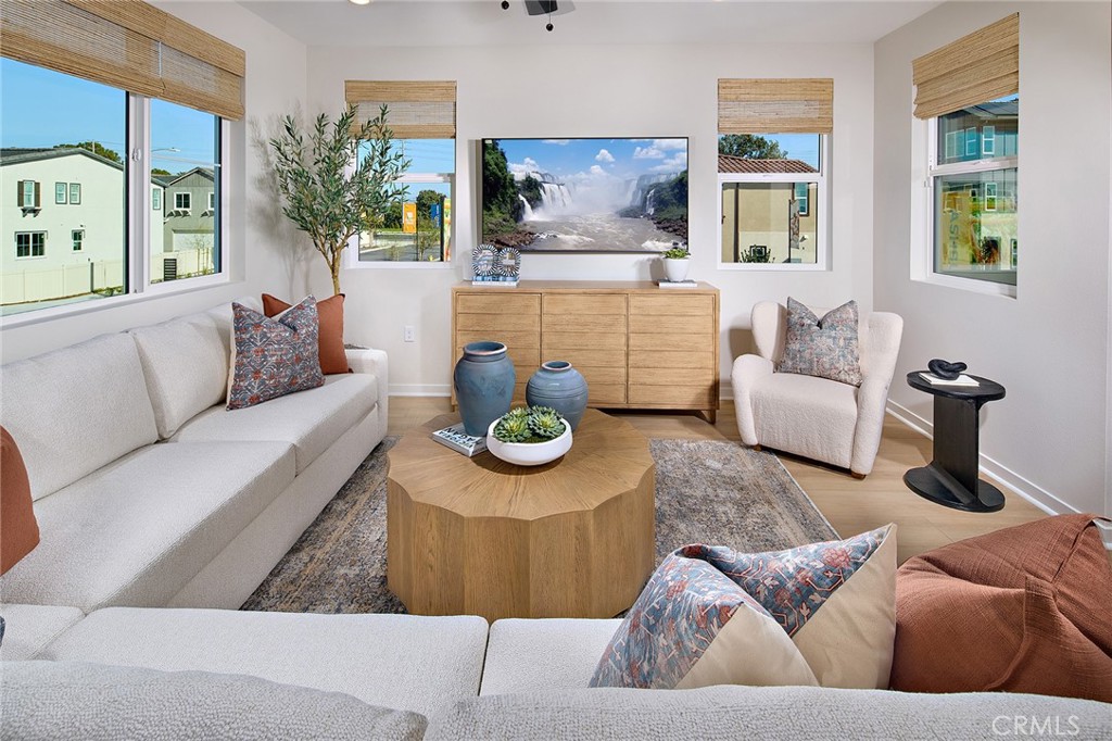 NEW CONSTRUCTION at Eastvale Square by Risewell Homes. Newly released premium, perimeter location (adjacent to extra parking opportunities). This unique three story floorplan offers a perfect balance of versatility, flexibility, and open concept living, beginning with a convenient first floor bedroom with full bath—ideal for guests or a home office—alongside direct access to the spacious 2 car garage. The second floor is designed for effortless entertaining, featuring a bright and airy layout where the modern kitchen with island and expansive perimeter storage flows seamlessly into the dining area and living room, with a charming deck extending the space outdoors. Upstairs, the third floor hosts a serene primary suite complete with a generous walk in closet and a beautifully appointed en-suite bath, along with an additional bedroom, full bath, and a centrally located laundry room for everyday ease. With its thoughtful layout and contemporary style, this home elevates comfort and functionality at every level. Closer to first-class community facilities (The Junction), highlighted by a modern clubhouse, wellness center, pools, playground, greenspace, and so much more. We invite you to visit and experience the Eastvale Square lifestyle, surrounded by so many dining/shopping/entertainment options both current and upcoming (*Whole Foods) as well as proximity to 15/91/71 commuter routes and employment hubs. Builder concessions available, ESTIMATED APRIL MOVE IN.