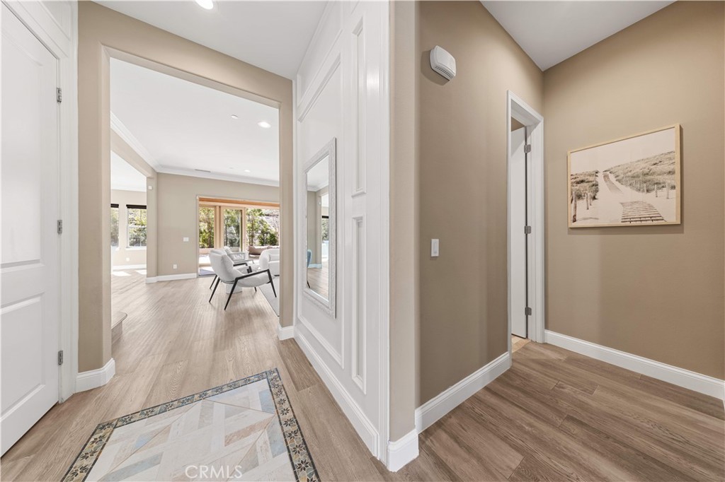 Welcome to 5951 Porto St, located in the highly desirable Vila Borba community of Chino Hills. Set on a premium corner lot with manicured landscaping and exceptional curb appeal, this home offers standout privacy with no rear neighbors and no direct front-door or driveway-to-driveway facing homes—a rare and valuable feature. Inside, enjoy a bright, open layout enhanced by tasteful custom details throughout. The dine-in kitchen is designed for both daily living and entertaining, featuring abundant cabinetry and counter space, a large center island, stainless steel appliances, and a butler’s pantry for added storage and prep. The adjoining family room is warm and inviting —perfect for relaxing or hosting guests. A unique highlight: every full bathroom includes a window (excluding the powder room), providing natural light and improved comfort. The main level offers a highly desirable expanded first-floor suite with an ensuite bathroom, created through a builder upgrade that converted the formal dining room into an oversized bedroom—ideal for multi-generational living, guests, or a private office. Upstairs, retreat to a spacious primary suite with dual sinks plus a makeup vanity, an oversized walk-in shower, a soaking tub, separate walk-in closets, and a private balcony overlooking the backyard. Three additional bedrooms, two full bathrooms, a conveniently located laundry room, a spacious loft, and excellent flow complete the second level. Step outside to a low-maintenance backyard designed for year-round enjoyment, featuring a California room and turf lawn—perfect for entertaining, relaxing, and making memories. Ideally situated in the acclaimed Chino Valley Unified School District, this home is assigned to top-rated Butterfield Ranch Elementary, Robert O. Townsend Junior High, and Chino Hills High School. Enjoy nearby parks, scenic walking paths, and dog-friendly amenities, with easy access to shopping, dining, and entertainment at The Shoppes at Chino Hills, plus convenient commuting via the 71, 91 Freeway. This exceptional home offers the perfect balance of privacy, functionality, lifestyle, and location—a must-see in Chino Hills.