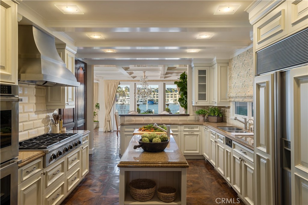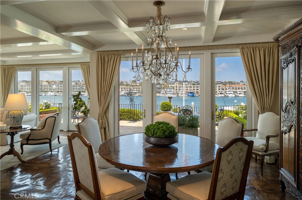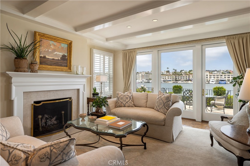 Positioned on a rare 40-foot wide parcel along one of Lido Isle’s most desirable waterfront stretches, this bayfront residence offers an uncommon combination of scale, proportion, and orientation. Designed in a traditional style and executed with architectural clarity, the home encompasses nearly 4,000 square feet of interior space with uninterrupted views across one of the harbor’s broadest channels. The site adjoins a private park and sandy beach, affording both visual breadth and lateral privacy—attributes not oft found on this private island. The layout is structured to accommodate both formal and informal living. Principal rooms, including a well-composed living room and a dining area of considerable dimension, open to broad waterside terraces. The kitchen, positioned to capture views of the bay, is paired with a casual dining area and an adjacent family room. A discreet guest bath completes the main level. Above, the primary suite occupies a substantial portion of the upper floor and includes a private water-view sitting area with fireplace, a sleeping room with water and city-light vistas as well as a private terrace, a bath clad in Italian marble, and a dressing area of considerable scale. Two secondary bedrooms share a full bath, completing the private quarters. A commercial-grade elevator serves all levels, offering both practicality and ease. The three-car garage includes additional storage, while the private dock accommodates a sizable vessel and is complemented by a waterside pier patio—designed for comfortable living at the water’s edge. This home’s location is but steps from the island’s private beaches, tennis courts, many parks, and clubhouse. Restrained, elegant, and offered in perfect condition, this residence offers a rare opportunity to enjoy the very best of Lido Isle.