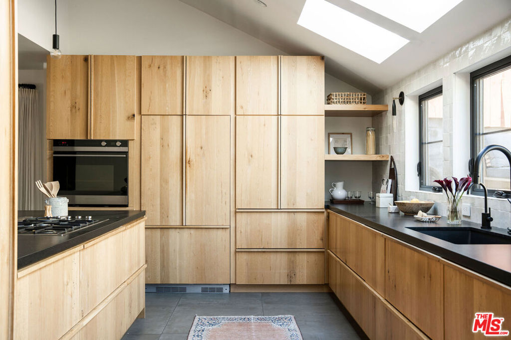 Nestled on a quiet cul-de-sac, this architecturally reimagined home blends elevated design with thoughtful upgrades throughout. A fully gated entrance and long private driveway offer privacy and ample parking, while a flat grassy lawn with mature fruit trees leads to a charming covered front porch. Redesigned with the help of 1000xBetter and Counsel Design, the first floor features an open-concept living and dining area flowing into a chef’s kitchen with custom cabinetry, high-end appliances, and a row of windows and skylights that frame the cascading backyard greenery. Also on the main level is a sunlit primary suite with a spa-like bath featured in DWELL magazine, plus an additional bedroom ideal for guests or a home office and a full bath. Upstairs offers three additional bedrooms, a full bath, oak hardwood floors, and generous storage. The lush backyard provides neighborhood views and multiple spaces to lounge and entertain, all just moments from the shops and restaurants of Highland Park, Eagle Rock, and Pasadena.