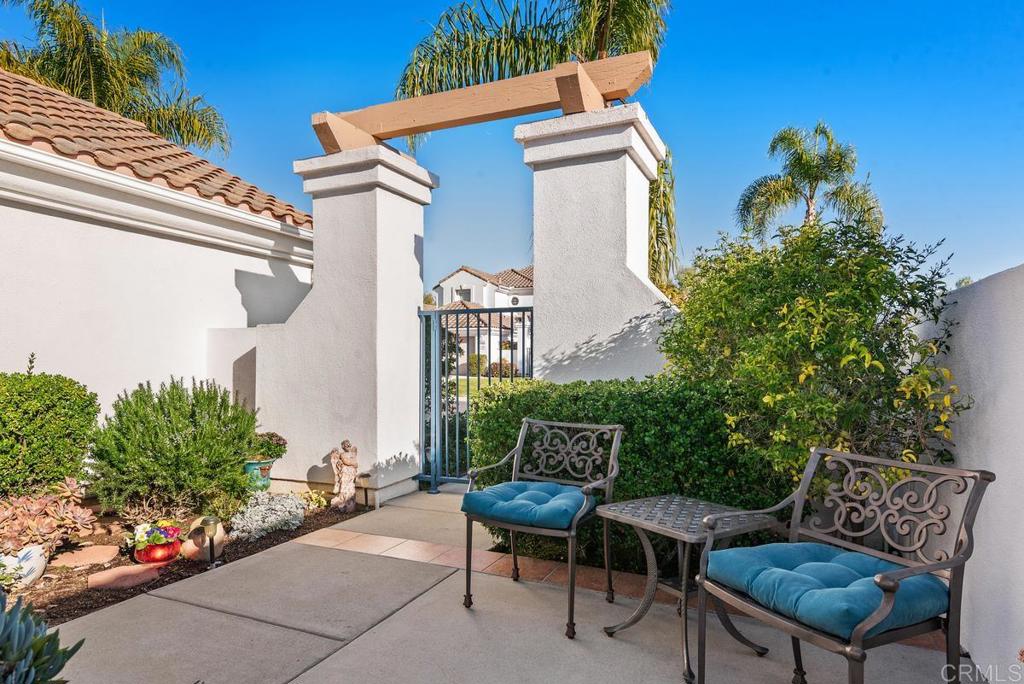 An extraordinary opportunity to own a detached Paros model home with lovely ocean views has emerged in the prestigious Ocean Hills Country Club, a dynamic +55 community located in San Diego’s coastal north county. This resort-style hideaway features 2 bedrooms and 2.5 bathrooms, situated in the newest section of this vibrant retirement community. As you approach, a private courtyard and grand double-door entrance with solid brass handles welcome you. Step inside to the refined living and dining areas with airy ceilings, illuminated by exquisite antique French crystal chandeliers—creating the perfect ambiance for entertaining. Both the primary bedroom and the family room offer serene sunset views and direct access to a covered patio where you can savor panoramic vistas in complete privacy. The property is surrounded by a vinyl fence and beautifully landscaped on all four sides with mature, easy-to-maintain plants, enhancing the home’s allure and tranquility. The kitchen features oak cabinets, all stainless steel, high-end appliances including a subzero refrigerator, and a spacious, reconfigured, walk-in pantry. The kitchen seamlessly opens to the inviting family room, which boasts a cozy gas fireplace and an elegantly designed entertainment center. The TV angle can be adjusted for easy viewing from both the kitchen and family room. The primary bedroom suite, located on the first floor, includes a custom-designed walk-in closet by California Closets, providing ample storage and organization. Upstairs, you’ll discover another bedroom and a versatile loft space that can be used as an office, craft room, or third bedroom, offering flexibility to suit your lifestyle needs. This home boast Plantation shutters throughout.The full bathrooms have been recently remodeled with new cabinetry, counters, mirrors, lighting and beautifully tiled showers with a focus on comfort and luxury. All three bathrooms are equipped with electricity wiring for heated seats or bidets. Ocean Hills Country Club is an Active-55+ community with outstanding amenities.Include in the HOA fee is an 18-hole executive golf course (free to residents & guests), Pickleball, tennis, solar heated swimming pool & hot tub, and RV parking (space permitting). Residents can partake in the many activity choices available in the 27,000 sq. ft clubhouse including exercise classes, billiards room, meeting rooms and a well stocked library. 24/7 on-site security enhances the safety of the entire community. Come enjoy this wonderful community and its many amenities.