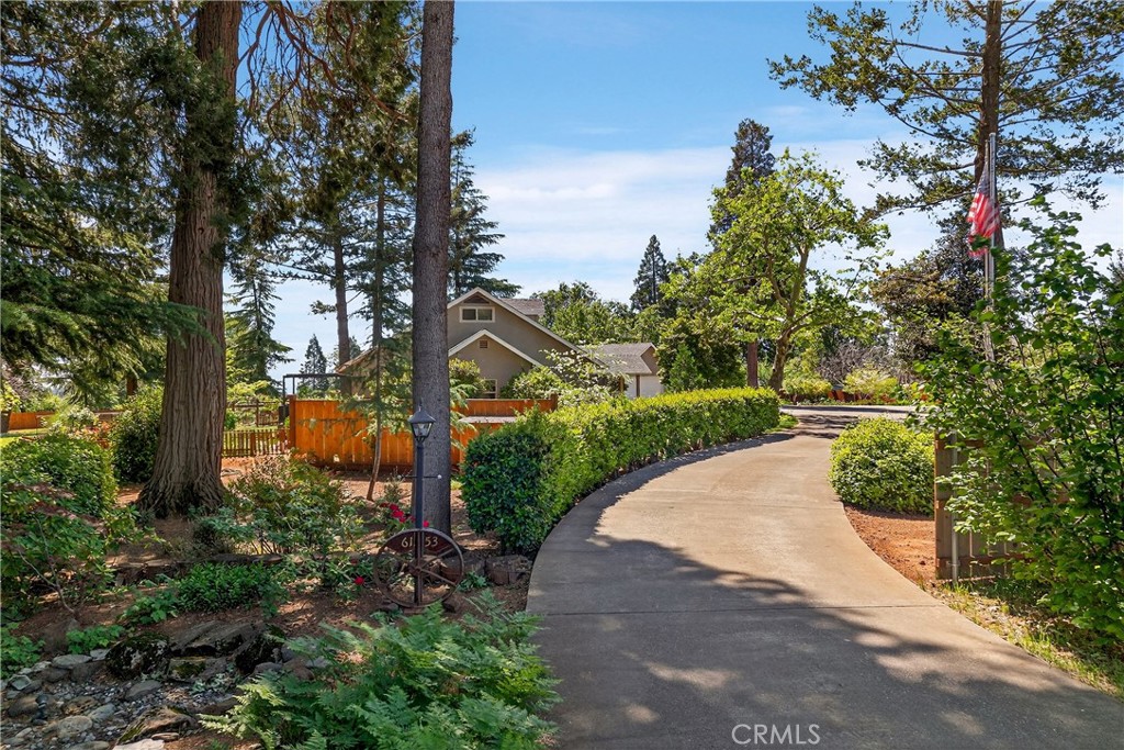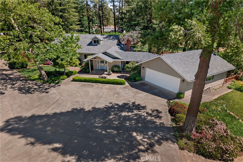 Wow this property is sure to impress! Pride in ownership best describes this 2.1 Acre property. Craftsman meets Contemporary! Privacy and seclusion and yet close to central Paradise. The concrete driveway and pristine landscape welcomes you to this special property. This gorgeous home offers a fantastic kitchen with cherry wood cabinets with pull-out drawers, Dacor built in range with stainless hood, Granite counters, large island, double oven, dishwasher, Kohler professional sink, recessed lighting, kitchen aid refrigerator and built in microwave. The kitchen overlooks the living room with crown molding, wood stove insert accented with tile from floor to ceiling. The living room also has a dining room area with a slider to the composite back deck with a louvered covering that can close or be open. Down the hall is the Primary bedroom with custom built in drawers, cabinets, slider to a private patio. The primary bath offers radiant heated tiled floors, tiled shower with glass surround, two sink vanity w/ granite counters and crown molding. Next to the primary is a bonus room with a variety of uses. Upstairs are two more bedrooms with their own central heat and air system. The main floor has its own HVAC system. The fantastic breezeway gives almost 300 sq. ft. of covered outdoor living with upgraded Poly Tech concrete covering. The breezeway attached to the huge over 600 sq. ft. garage with built in cabinets, laundry, bathroom with newly tiled shower, Poly Tech floor and hot water heater. Across from the home is a 28X36 Shop with 220-volt plug, stucco exterior, 2×6 insulated walls, double pane windows and two automatic roll up doors. The landscaped grounds offer a wonderful garden and many varieties of trees such as plum, cherry, orange, mandarins, lime, lemon, fig, roses, camellias, Japanese maples and many more. The home also has a Pelican water filtration system. There was an ADU that was lost in the fire, but the septic system is still there and was inspected and all passed, the system was permitted for a two-bedroom ADU. If you’re looking for space, privacy, wonderful Paradise setting this could be the place.