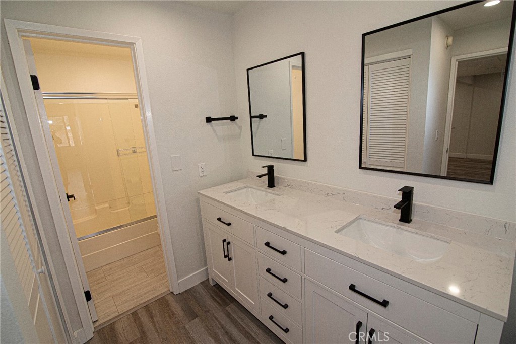 Open and bright single-level condo located in the highly desirable, guard-gated Warner Woodlands community in the heart of Warner Center. This beautifully appointed 2-bedroom, 1-bath condominium offers exceptional privacy, abundant natural light, and refined finishes throughout. The inviting living space features elegant laminate flooring, a decorative fireplace, and access to a private balcony perfect for relaxing or entertaining. The modern kitchen is equipped with new stainless steel appliances, a gas cooktop, gleaming granite countertops (no refrigerator), and a newly installed water heater. For added convenience, the home includes an in-unit washer and dryer. The spacious primary suite is thoughtfully designed with a sitting area or home office, dual closets, and a well-appointed bathroom with double sinks. A private two-car garage provides secure parking along with additional built-in storage. Residents enjoy resort-style amenities, including a sparkling pool, spa, tennis court, and beautifully maintained grounds. Ideally located just moments from The Village and Westfield Topanga, as well as premier shopping, dining, entertainment, and outdoor recreation, this home offers the perfect blend of comfort and convenience. Don’t miss this exceptional opportunity to own in one of Woodland Hills’ most sought-after communities.