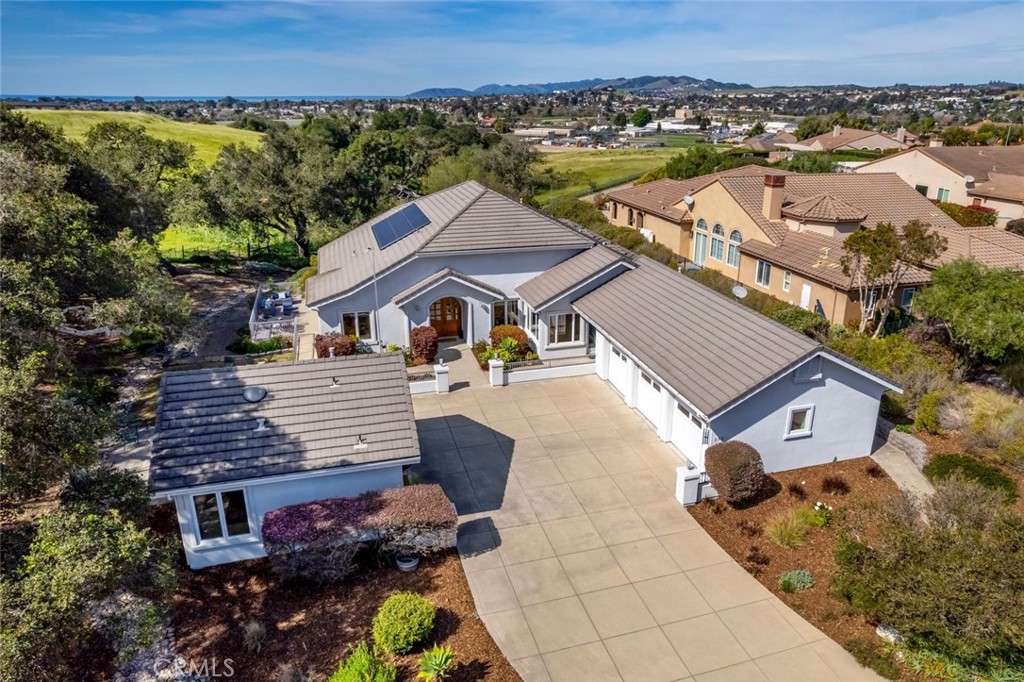 Rare opportunity to live in the highly desirable Vista Del Mar neighborhood! This inviting single-level home sits on a spacious lot surrounded by stunning mature oak trees, creating a peaceful and private atmosphere. This wonderful property includes a 3458 sq ft. main residence plus a bonus 430 sq ft. detached ADU. Inside, the main residence features a bright, light-filled floor plan with large windows that frame beautiful sunset views and fill the space with warmth and natural light- making every day feel a little more special. The nicely appointed kitchen offers ample cabinetry, generous counter space and the convenience of two ovens, making it ideal for everyday living and entertaining. The kitchen flows easily into the dining and living areas, creating a functional gathering space. A charming study/library with built-in bookcases provides the perfect spot for a home office, reading room or quiet retreat. The spacious owner’s suite offers a relaxing getaway and includes a well-appointed bathroom with dual sinks, a separate step-in shower and a soaking jetted tub. Additional bedrooms are well-sized and thoughtfully positioned within the home. Stepping outside, you’ll find a beautiful private setting enhanced by a grove of mature oak trees. A generously sized deck and patio area provide the perfect space for outdoor dining, relaxing or entertaining while enjoying the peaceful surroundings and evening sunsets. Adding to the versatility of the property is a 430 sq ft. detached ADU studio complete with its own bathroom, offering an excellent opportunity for guests, extended family, a home office or potential rental income. Ideally located just a short drive from the Village of Arroyo Grande, local parks, shops and beaches, this property offers the perfect combination of single-level living, privacy, natural beauty and flexible living space in one of the Central Coast’s most desirable communities.