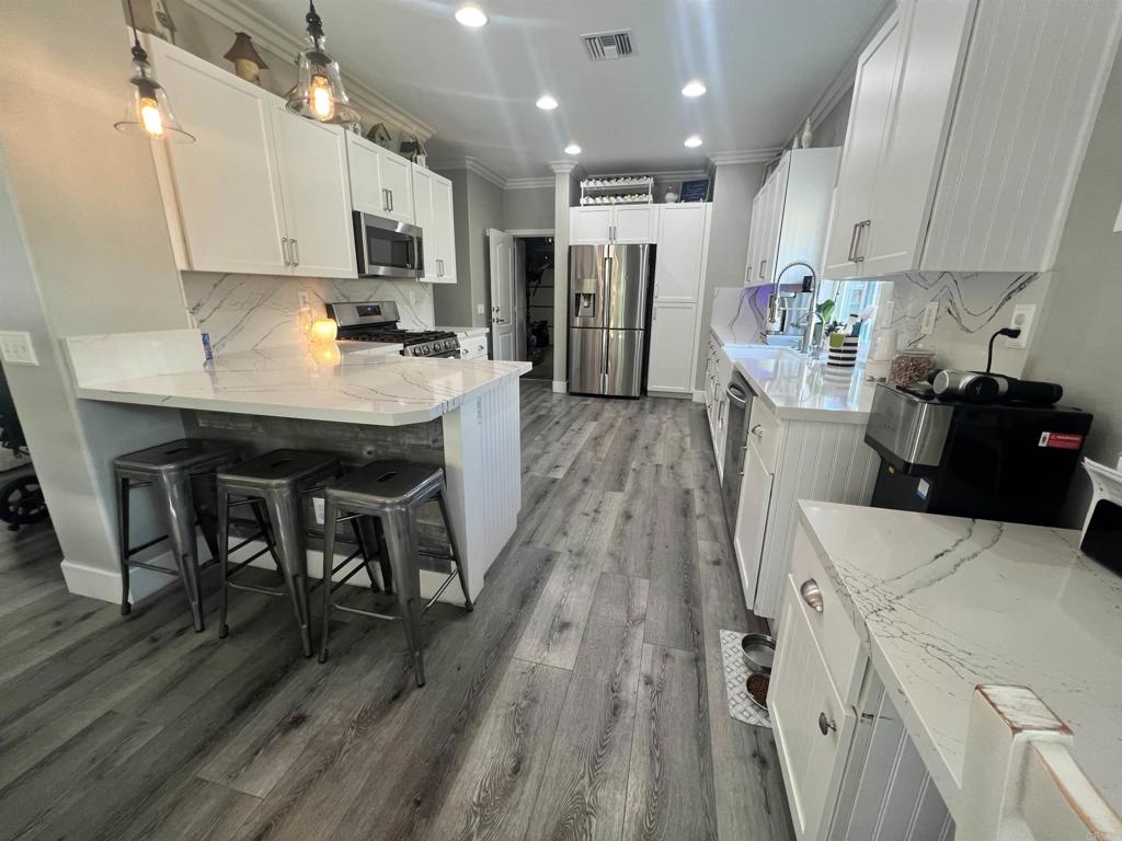 Better hurry as this one will not last long. Only once in a great while do homes remodeled and upgraded to this extent come up for sale. Upgrades usually only found in model homes are featured here. Front to back top to bottom a show stopper. The backyard is as impressive as the interior. Featuring a pebble lined pool/ 10 person spa which can be operated by an app on your phone, solar heated pool for economic comfort, full outdoor kitchen area for entertaining on a grand level. Also there is a golf putting green for the golf enthusiast. The entire property is meticulously landscaped beyond compare, even full lighting for night time atmosphere. A full makeover in the kitchen with quartz countertops with full backsplash, extensive white custom cabinets including two work areas and a farmhouse sink. Entire down stairs has beautiful and easily maintained laminate flooring, while up stairs is graced with gorgeous hardwood flooring. There is a formal dinning area as well as the eat-in kitchen. Over the top lighting provides a custom and luxurious ambience suited for the most discriminating buyer. The family room off the kitchen has built-in book-shelfs with plenty of additional storage and accommodates a super large TV for entertaining. The stately plantation shutters are the cherry on top of this customized jewel of a residence. Four bedrooms are found upstairs as well as the bonus room for another opportunity to relax. Originally a three bedroom the fourth bedroom option has been chosen to accommodate a larger families needs. Secondary bath is accented with ships lath and upgraded lighting. The extra large primary suite and bath provide quiet comfort and extraordinary luxury in the bath which has a huge walk-in shower, double sinks high-end lighting and a walk-in closet with organizer. 16 panel solar system keeps those bills to a minimum. Both solars are seller owned. HVAC is recently replaced. This true gem of a home must be seen to appreciate and fully comprehended.Professional photos are coming soon!!!