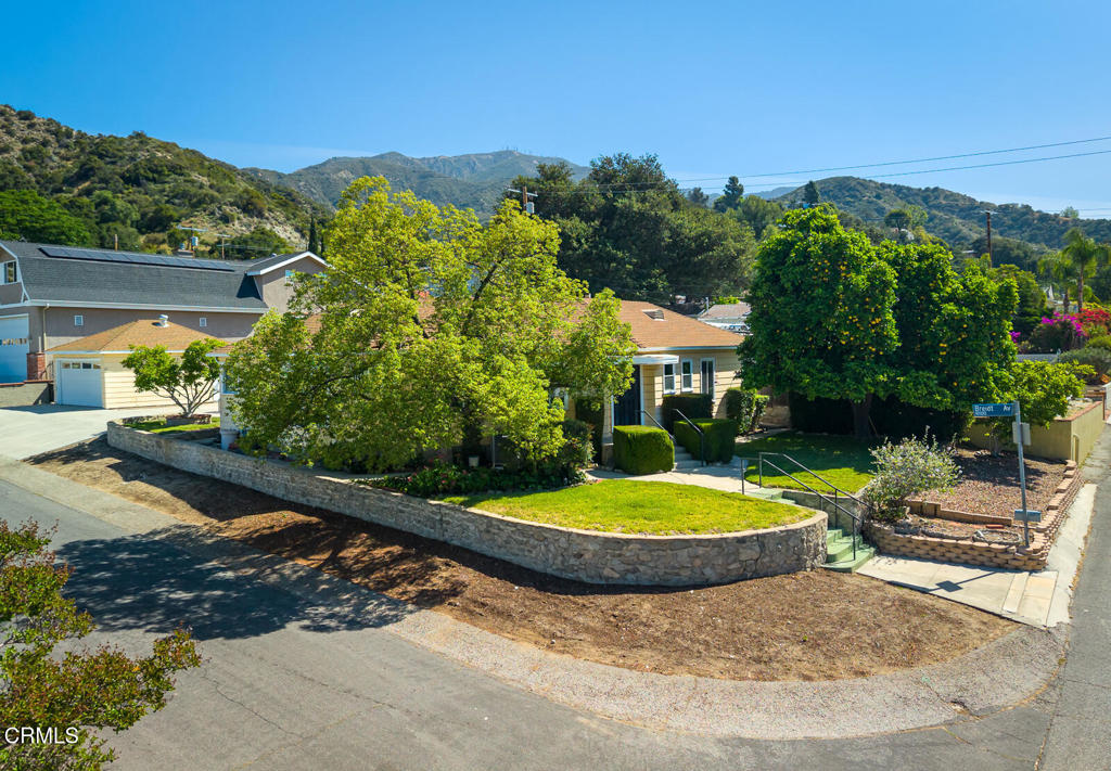 Charming 1940 Traditional on Corner Lot with Additional Parcel & Detached Garage/Workshop. Looking for the right artist to reimagine this 1940 home. Nestled near the mountains on a desirable corner lot, this inviting 3-bedroom, 2-bathroom home blends classic character with everyday comfort. Offering approximately 1,687 square feet of living space, the home features a spacious living room with a wood-burning fireplace with gas starter, tile hearth, mantle, built-in shelving, and a cozy alcove ideal for a home office or reading nook. The dining area is highlighted by charming bay windows, while the kitchen includes maple cabinetry, tile countertops, gas cooktop, built-in oven, microwave, dishwasher, disposal, refrigerator, and ceiling fan. A separate laundry area includes washer and dryer, along with an electric water heater. The home offers two bathrooms–one with a shower and one with a tub–and three well-proportioned bedrooms. Additional features include mostly dual-pane windows, central HVAC, and classic wood siding. The property spans a total of approximately 8,220 square feet across two parcels, including a 5,371 square foot main lot and a separate 2,849 square foot lot. The detached two-car garage with automatic door opener includes a workshop area, offering excellent potential for storage, hobbies, or possible future use. Front and rear lawns, mature fruit trees, and the corner location enhance the outdoor appeal of this unique property.