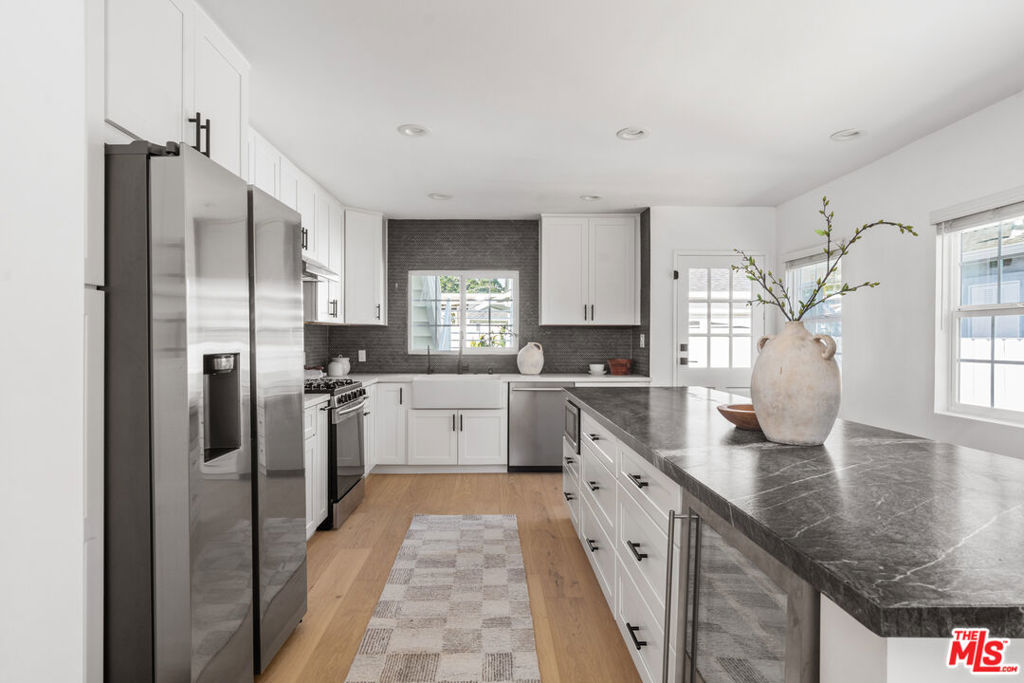 Welcome to this exceptional 5 bedroom 4 bath two-story family home nestled in the highly desirable Kentwood pocket of Westchester. Beautifully landscaped and set on an expansive 6,000+ square-foot lot, this property offers a rare, oversized backyard made even more impressive by the efficient footprint of a two-story design. Step inside to soaring ceilings and an abundance of natural light that immediately create a bright, welcoming atmosphere. The front family room flows seamlessly into a stunning chef’s kitchen, highlighted by a massive island perfect for everyday dining, entertaining, and gathering. The main level features a private primary suite with an en-suite bathroom, walk-in closet, and large double vanity, along with two additional guest bedrooms that share a well-appointed hallway bathroom. Upstairs, a thoughtfully designed loft provides a flexible retreat ideal for lounging, a home office, playroom, or space for older kids while two spacious en-suite bedrooms complete a layout that mirrors new construction. A two-car garage offers ample storage or secure parking, and just beyond it sits a fantastic bonus space, perfect for a home office, gym, workshop, or pool house. The expansive backyard is an entertainer’s dream, with room to add a pool, swing set, or outdoor living areas, all while still leaving plenty of space for kids to play. Enjoy your morning coffee or evening cocktail on the patio off the primary suite as you soak in sunny California days. Westchester is one of the most community-driven neighborhoods in Los Angeles, with many local schools located right within the neighborhood. You’ll be friends with your neighbors in no time as residents are always out walking, gathering, and enjoying everything the area has to offer from Fourth of July block parties and a phenomenal Halloween to an unmatched holiday spirit. Zoned for the highly coveted Kentwood Elementary School, this is a home and lifestyle that truly shouldn’t be missed. RTI plans for a brand-new ADU are available upon request.