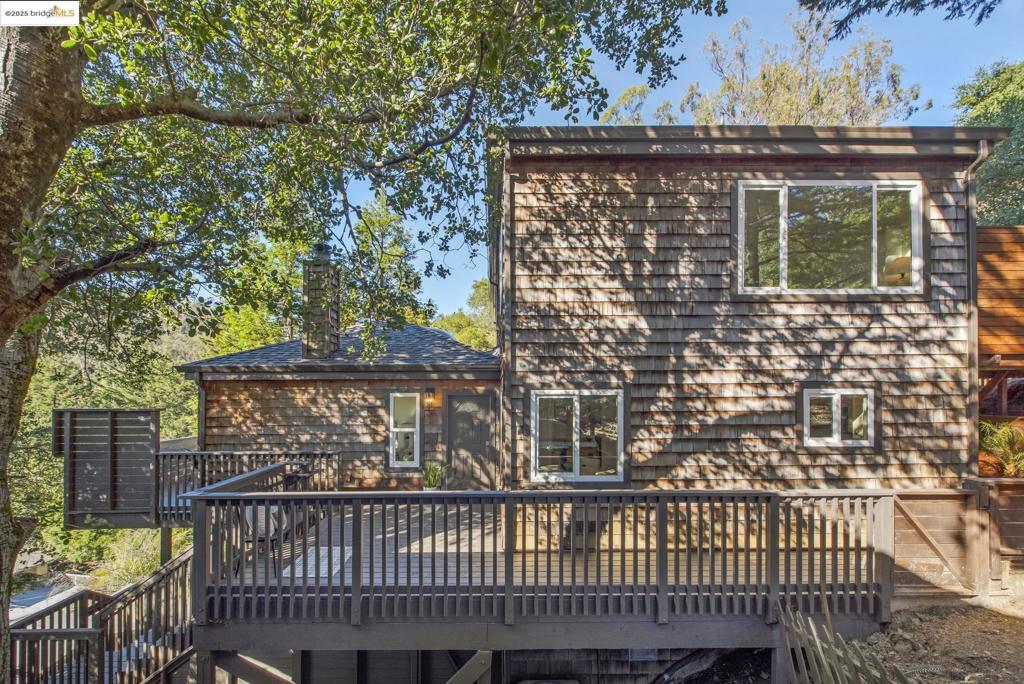 Retreat to this marvelous Montclair contemporary nestled in the Oakland Hills with sweeping hillside views. Spacious 3-bedroom, 3-bathroom brown shingle home is perched above it all & offering the privacy you crave. Welcoming living space with soaring ceilings, a skylight, lots of large windows & direct access to the front balcony for great indoor-outdoor flow. Enjoy snuggling up next to the cozy fireplace on those chilly evenings. Gorgeous kitchen featuring quartz countertops, chic tile backsplash, stainless steel appliances, abundant cabinetry & a convenient breakfast nook for everyday meals. Adjoining formal dining area connects to a private deck perfect for al fresco meals. Generous primary suite is equipped with a built-in fireplace, walk-in closet, bonus vanity & an exclusive terrace. Ensuite complete with a soaking tub & large walk-in shower. Downstairs, the 3rd bedroom with its separate entry flexes beautifully as a family room or guest quarters. 3-car garage + extra storage spaces offer additional flexibility. Amazing location close to Montclair Village with local shops & restaurants. Enjoy nearby trails & fitness centers for that healthy lifestyle. Easy access to HWY-13, HWY-24 & I-580 for commuters or those who wish to take advantage of all the Bay Area has to offer.