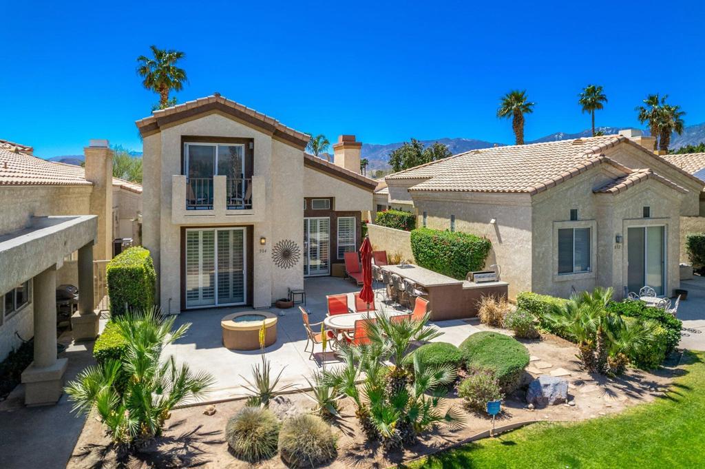 Welcome to Desert Princess, a guard-gated community in Cathedral City. Prepare to be enchanted by this bright Villa, perfectly located on the golf course. Step onto the extended patio, offering ample space for entertaining. Fire up the grill in the impressive outdoor kitchen, unwind with a refreshing libation, & savor breathtaking sunsets or the distant sight of golfers. Embrace cozy evenings around the large fire pit under the starlit sky. This furnished home has been meticulously remodeled, boasting fabulous mountain views & an unobstructed vista of the fairway, ensuring tranquility & serenity. Enjoy these picturesque views from the two spacious primary suites, as well as the inviting great room. Immerse yourself in luxury with large tile flooring on the diagonal, custom plantation shutters, soaring ceilings, & contemporary baths, complemented by abundant closet & storage space.Desert Princess beckons with its renowned 27-hole PGA Championship golf course, acclaimed by Golf Digest. The perks of the HOA, includes a Social Membership to the vibrant club with no monthly minimums, 20% discounts on food, Tennis & Fitness Membership, Cable + HBO/Showtime, exterior building maintenance, insurance, water, and 24-hour patrol. Delight in the community’s 33 pools & spas. Conveniently located near PSP, & Downtown Palm Springs, DPCC has easy access to dining, shopping, hiking, biking, tennis, pickleball, and Acrisure Arena.