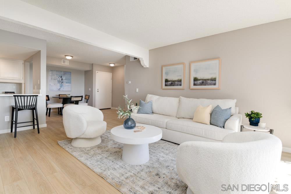 Amazing turn key VIEW condo in the highly sought after Woodlands complex in San Carlos! The spacious open floor plan offers upgraded flooring, kitchen and bathrooms. Ideal set up with bedrooms on either side of unit with AC, stackable laundry and 2 car side/side garage. Within easy walking to great shopping, dining and Cowles Mountain! Sip your favorite drink on your private patio taking in the fantastic views! Amazing amenities including tennis courts and sparkling pools.
