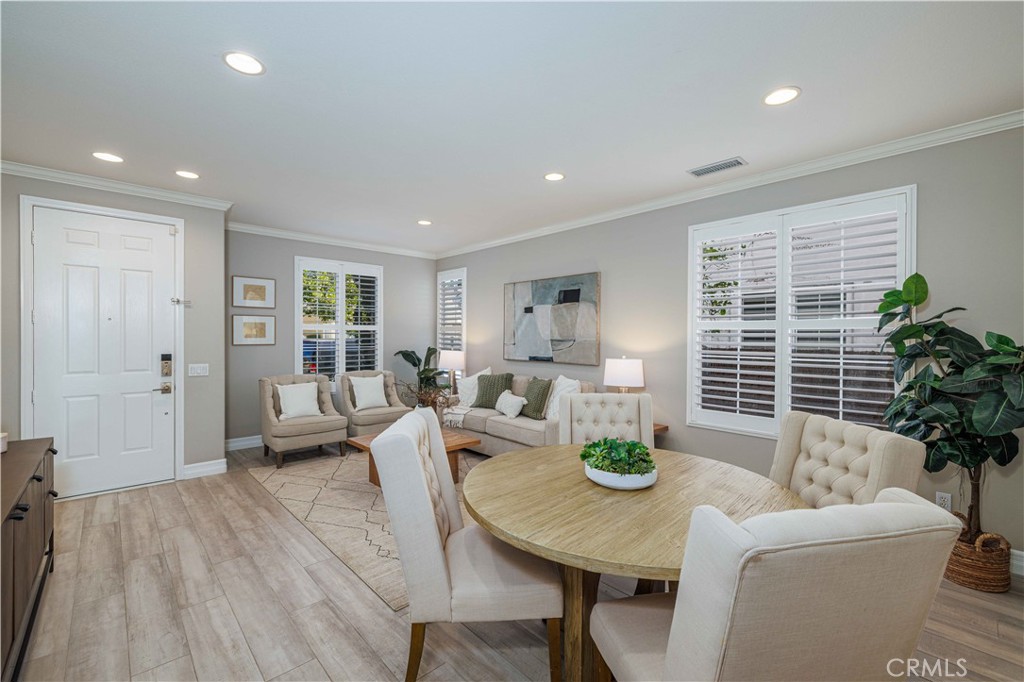 COMPLETELY REMODELED | TURNKEY | PREMIUM UPGRADES! Welcome to 7 Laurelhurst, located in the highly desirable Whispering Creek neighborhood of Ladera Ranch. This beautifully remodeled, truly turnkey home offers 4 bedrooms, 2.5 baths, and 2,419 sq ft of thoughtfully designed living space with designer finishes throughout! Upon entry, you’re greeted by a spacious formal living & dining area showcasing elegant Italian style porcelain large-plank flooring, custom paint, crown molding, upgraded baseboards, & graceful arched hallways. The heart of the home is a stunning gourmet kitchen, featuring a dramatic quartzite center island surrounded by elegant quartz countertops, Carrera marble-ledgestone backsplash, custom white shaker cabinetry, stainless steel appliances including double ovens & microwave, a butler’s pantry/entertainment bar, & custom pendant lighting. A brand new Samsung premium refrigerator w/ integrated TV completes the space. The open-concept family room offers a custom built-in media niche, stacked-stone fireplace, tech/workstation area, & soaring ceilings open to the second floor. Upstairs, plush Fabrica Cotton Club carpeting leads to the expansive primary suite with dual walk-in closets, plantation shutters, crown molding, and a private balcony. The fully remodeled spa-inspired primary bathroom features extra-large 4’ x 4’ thick cut porcelain tile (floor to ceiling) specially imported from Europe with matching custom-cut mosaics in shower and tub floor, quartz countertops, upgraded vanity, a freestanding soaking tub, glass-enclosed walk-in shower, custom lighting, and mirrors. Three generous secondary bedrooms feature custom window coverings and crown molding, with wall-mounted TVs included in three of the four bedrooms. Secondary bathrooms are equally upgraded with elegant stone & tile finishes, including a custom water-jet–cut marble feature wall. The backyard is a private retreat with top-of-the-line, low maintenance, synthetic turf, lush, mature palm & fruit trees (apricot and lemon seasonal blooms), BBQ, & a 6-person Hot Springs Vanguard spa with saltwater technology. Additional highlights include a finished two-car garage w/ epoxy floors, custom cabinetry, overhead storage, Tesla EV charger, Life Source whole-home water filtration system, tankless water heater, PEX repipe, lower-level laundry room, & a full 8’ walk-in side-yard storage area. This home truly has it all—luxury, comfort, and exceptional top of the line upgrades throughout!