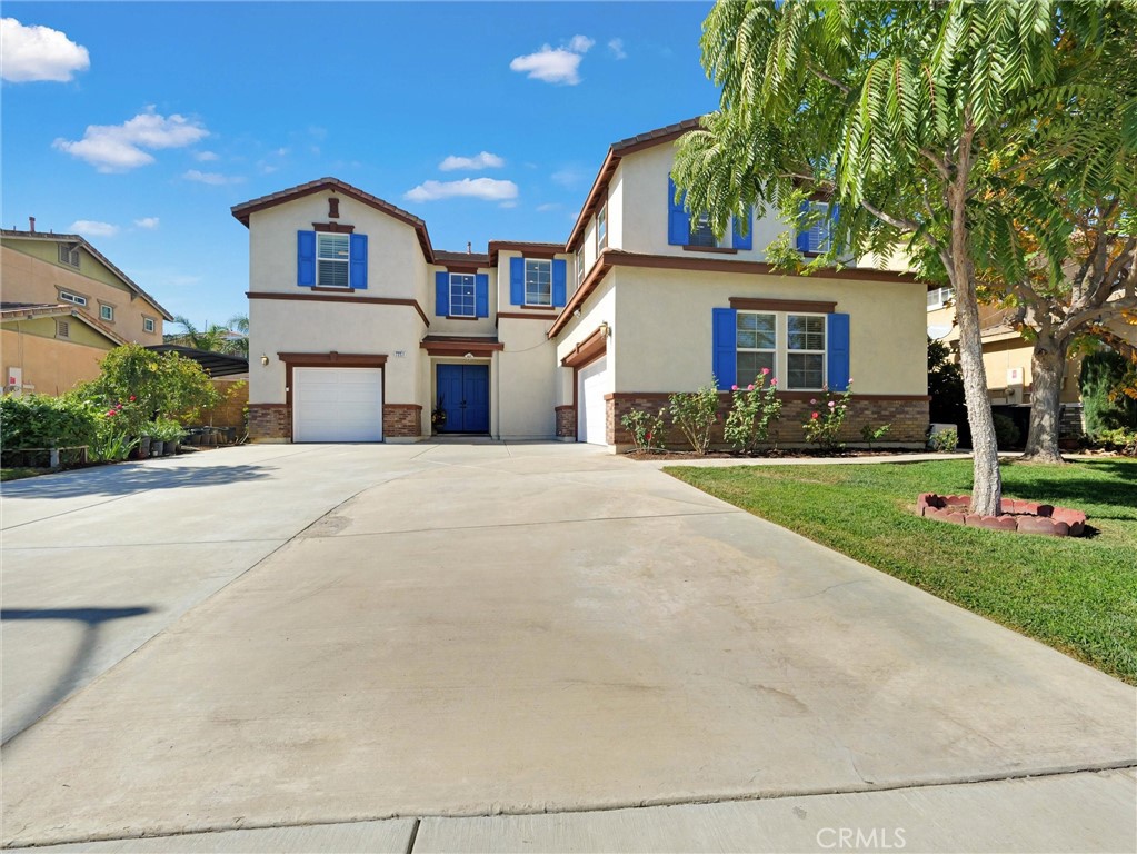 Welcome to this beautiful 5-bedroom, 4.5-bathroom, 3,575 sq foot home nestled on a quiet cul-de-sac in the heart of Eastvale. Perfectly located within walking distance to all three local schools—from transitional kindergarten through high school—this home offers both comfort and convenience for the whole family. Step through the front door into a stunning foyer featuring a grand staircase and balcony overlook. To the left, you’ll find access to the single-car garage, along with a private bedroom and full bathroom—ideal for guests or multi-generational living. A separate formal dining room provides an elegant space for entertaining. The spacious island kitchen with an open layout that flows seamlessly into the family room, complete with a cozy fireplace. A walk-in pantry and direct access to the connected two-car garage add function and convenience, while a guest powder room is thoughtfully located on the main floor. Upstairs, a generous bonus room or loft offers flexible space that can easily serve as a sixth bedroom, playroom, or home office. The expansive primary ensuite features dual sinks, a vanity area, a soaking tub, separate shower, and a large walk-in closet. Down the hall, bedrooms three and four share a Jack & Jill bathroom with dual sinks, while bedroom five enjoys its own full bath. A dedicated upstairs laundry room makes household chores a breeze. The backyard is designed for easy maintenance and outdoor enjoyment, featuring a concrete patio and an aluminum patio cover—perfect for relaxing or entertaining. There’s also potential space for RV parking. This Eastvale gem combines an ideal location, spacious layout, and timeless features—making it the perfect place to call home. *Some photos were digiatally staged