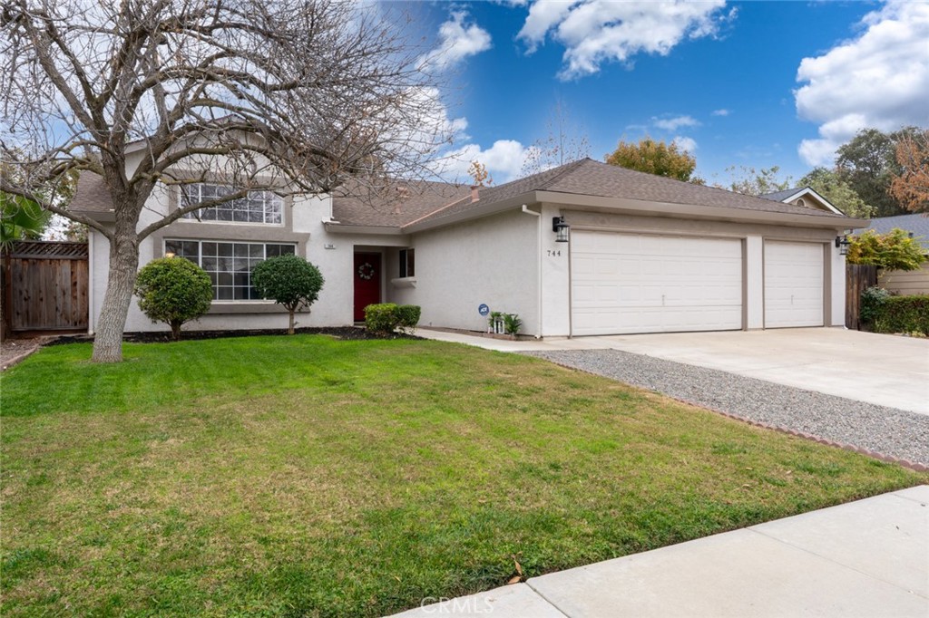 Nestled at 744 Bluff Drive, this attractive and updated property is situated in one of the most desirable areas of Los Banos. From the moment you arrive, you’ll appreciate the care and attention that has been lavished upon this home. Newly added features include: vinyl plank waterproof flooring throughout, interior paint, ceiling fans, light fixtures, all sink and faucets, dishwasher and water heater. The living room and separate family room serves as central gathering spaces, featuring a double sided fireplace that promises cozy evenings and a warm ambience. The high and vaulted ceiling enhances the sense of spaciousness, while the built-in shelves offer both practical storage and display space for treasured belongings. In the kitchen, you will find a culinary haven. Imagine preparing meals on the beautiful new quartz countertops, framed by the shaker cabinets and stylish new tile backsplash, with the kitchen peninsula providing additional workspace and a casual dining option. There’s a formal dining room with a gorgeous light fixture situated right off the kitchen area. The guest bathroom is designed for convenience, offering a double new quartz top vanity that provides ample space, alongside a new tub/shower combo. The primary bedroom provides a private retreat, complete with the added convenience of it’s own primary bathroom with new quartz countertops and walk in shower. Additional features include a laundry room for ease of chores, a fenced backyard for secure outdoor enjoyment, a patio for relaxing, and a shed for extra storage. Right behind the property is the Los Banos walk/bike trail that has a bridge close by to quickly access a route to Los Banos High School. This residence offers an exceptional opportunity to enjoy comfortable living in a desirable location.