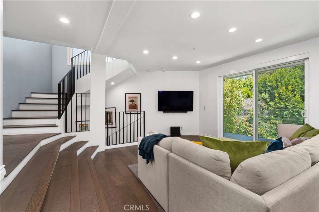 Corporate owned and competitively priced at $2,695,000, this striking modern retreat occupies one of the most coveted addresses on Hollywood’s Prime Celebrity Row—a destination known for privacy, prestige, and proximity to the Sunset Strip. Walls of glass frame serene canyon and treetop views, creating seamless indoor-outdoor living across nearly 3,100 sq ft of contemporary design. Expansive decks invite effortless entertaining, from sunset cocktails to dinner parties under the stars. Inside, open living spaces flow together with natural light and clean architectural lines. The dramatic primary suite offers a spa-inspired bath, custom walk-in closet, and a private balcony suspended in the trees. The flat backyard with turf lawn and koi pond provides a peaceful, low-maintenance setting with ample space to add a pool or spa if desired. Additional features include wide-plank oak floors, smart-home technology, a new HVAC system, elastomeric roof coating, and an 8-camera security system. With parking for five cars and direct Runyon Canyon trail access, this home delivers the rare blend of privacy, design, and location that defines the Hollywood Hills lifestyle.