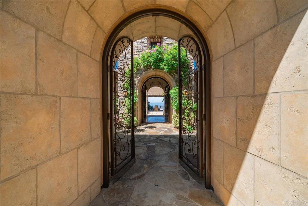 Welcome to 7930 Camino de Arriba located within the prestigious gated enclave of Cielo in Rancho Santa Fe. This rare single-level estate offers breathtaking views stretching from the cliffs of Catalina Island to the snow-capped mountains of Big Bear. Here, sunrise and sunset are daily masterpieces. Designed for exceptional living, this home is a celebration of timeless elegance and unparalleled craftsmanship. Lush landscaping and commanding architectural presence set a tone of refined grandeur and privacy. Inside, soaring ceilings, graceful archways and intricate woodwork showcase 200-year-old reclaimed wood beams and plank ceilings that infuse the home with warmth. The gourmet kitchen is a chef’s sanctuary, appointed with professional-grade appliances, custom cabinetry, and a striking brick barrel ceiling opening seamlessly to the expansive great room where dining, conversation, and relaxation unfold around a massive fireplace framed by custom built-ins. Walls of doors dissolve the boundary between indoors and out, creating a seamless flow for grand entertaining and offering expansive ocean and canyon views. The primary suite is a private retreat of remarkable scale and serenity. Dramatic ceilings, a statement fireplace, and a dedicated sitting room or office create an atmosphere of refined comfort. Thoughtfully designed built-ins include a microwave and refrigerator for ultimate convenience. The spa-inspired primary bath is crowned by a domed ceiling and features a jetted soaking tub, sauna, oversized steam shower, and a custom closet. Each additional bedroom offers en-suite accommodations, ensuring privacy and comfort for family and guests alike. Two of the suites enjoy private access to a tranquil, shaded courtyard. Outdoors, the estate transforms into a tropical paradise. A resort-style infinity pool and spa appear to merge with the horizon. The outdoor kitchen, covered California Room with fireplace, and expansive entertaining terraces invite effortless living. The sky deck delivers unparalleled stargazing at night and secluded sunbathing by day. At sunset, cocktails and charcuterie are best enjoyed around the poolside fire pit, where the silence and privacy of this remarkable property are unmatched. This impeccably designed home, encompassing breathtaking views, is more than a residence—it is an extraordinary experience waiting to be lived.