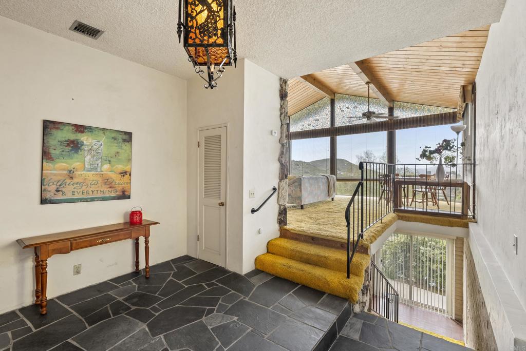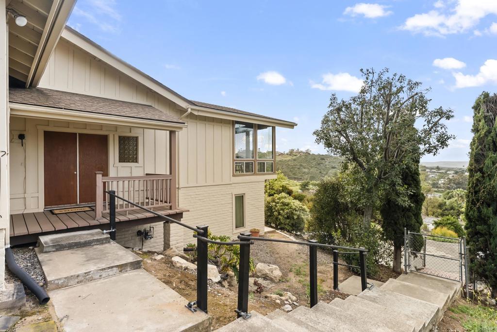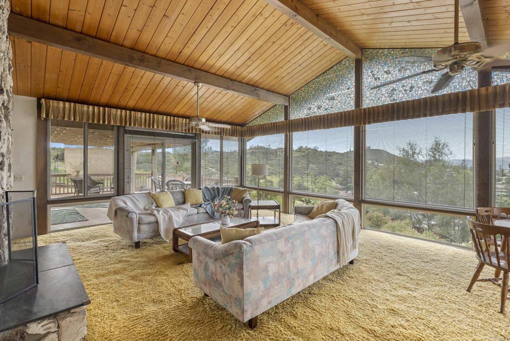 This dramatic wood and glass design offers single level living high above the treetops and rooftops below. The panoramic view overlooks the valley and to majestic El Capitan mountain beyond. The sunrises are spectacular here! Once inside you will be greeted by a groovy 70’s vibe with a formal entry way leading to the breathtaking Living Room and adjoining deck, both focused on that endless view. The deck is the perfect place to be for dining alresco or relaxing in the fresh air. The pass through kitchen window makes grillin’ and chillin’ easy here! All topped off with solar! Best value in the valley! Come and make this your own! Take this from fixer to FABULOUS!
