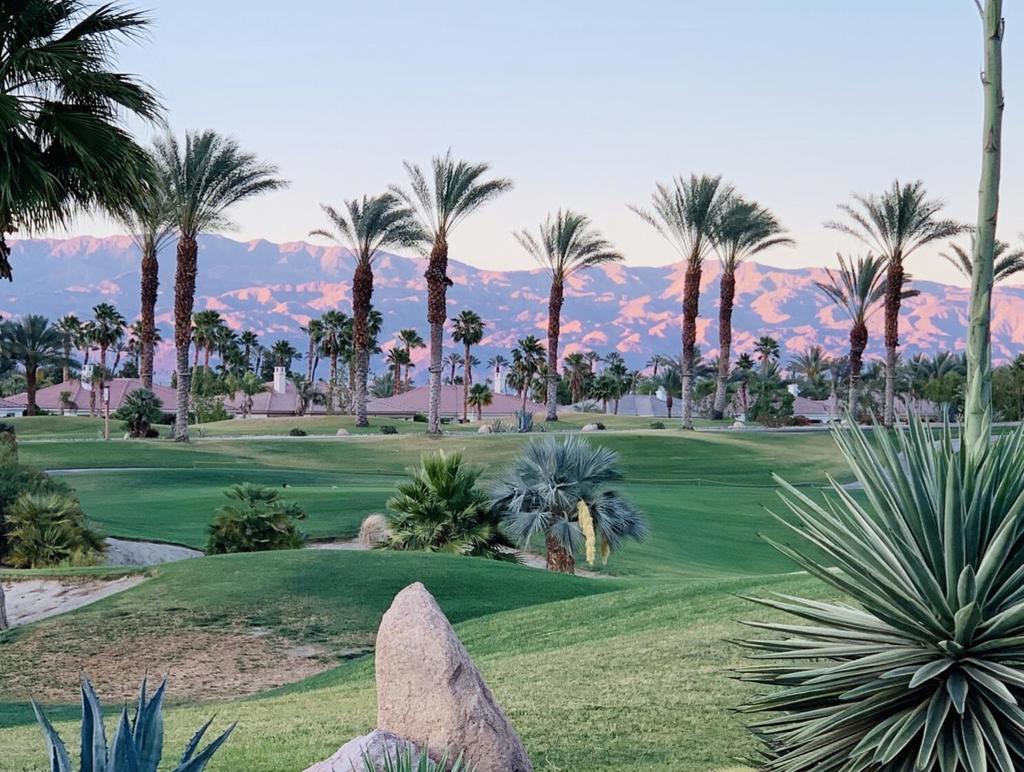 Clean design, flexibility, and desert living come together in a beautifully maintained home with endless potential. And the LOCATION is perfect… just a short walk to the clubhouse, spa and fitness, bocce ball, pickle ball, tennis.This 3-bedroom, 4-bath residence plus den offers a highly functional floor plan with no interior pillars, creating an open, airy feel and seamless flow throughout. Clean lines and thoughtful design provide the perfect backdrop for a variety of styles, whether you prefer modern minimalism or warm desert elegance.The updated kitchen features sleek quartz countertops, offering both style and durability–ideal for everyday living and entertaining. The open living and dining spaces flow effortlessly to the outdoors, making indoor-outdoor living a breeze.The versatile den with double doors provides an easy option for a home office, media room, or even a fourth bedroom. A unique highlight is the side yard access from the guest room, offering added privacy and convenience for visitors.Step outside to a private backyard retreat with salt water, pebble Tek pool and raised spa. Enjoy stunning mountain views, perfect for relaxing mornings, sunset gatherings, or creating your own custom outdoor oasis. Overlooking the 9th tee and no worry of golf balls.With generous living spaces and a flexible layout, this home presents an incredible opportunity to customize and make it your own–whether as a full-time residence, seasonal escape, or investment property.Located within the gates of Mountain View Country Club, residents enjoy access to a premier clubhouse and lifestyle. Be part of an active and engaged community with world-class golf, tennis, pickleball, bocce ball, spa and fitness, clubs within a club (hiking, book, cards, wine club, and more) and bar and dining amenities.Clean, functional, and full of potential–this is desert living at its best.