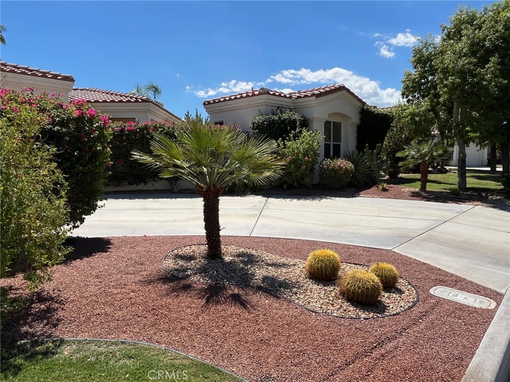 Former Celebrity Home! Welcome to this lovely single family home located at 81 Appian Way in the fashionable city of Palm Desert, CA. Built in 1998, this home is located in the cozy gated community of Tierra Vista. This home has a large wrap-around back yard with mature shade trees and excellent privacy, framed by panoramic south and west facing mountain views. A stand-alone guest house provides one bedroom and one full bath, with it’s own private patio and garden area – perfect for hosting family and friends. What’s to like? 5 bedrooms, great floor plan,12 foot ceilings, full size kitchen, wrap-around mountain views, large backyard with fruit trees, shade trees, separate patios, pool and jacuzzi. The exterior of the home boasts beautiful landscaping and a charming curb appeal. Step inside to find a well-designed floor plan with high ceilings, large windows and plenty of natural light. The home has two fireplaces in the living room and family room. The large chef’s kitchen has granite countertops with plenty of cabinet space, and is nicely separated from the living areas. The dining area has an expansive view of the backyard garden and western mountains beyond – a scenic spot for enjoying meals with family and friends. The spacious master bedroom occupies a separate wing of the house with south facing mountain views. The master suite features a luxurious en-suite bathroom, a large soaking tub, dual vanities, a separate walk-in shower and large walk-in closet. The additional 4 bedrooms are generously sized and feature open garden and mountain views. Outside, the backyard is a private oasis with a covered patio, lush landscaping, and plenty of room for outdoor activities. The home features a 2-car garage for parking and storage. The oversized driveway has room to park 4 additional cars or RV. Located in a prime location in Palm Desert, this home is close to shopping, dining, parks, and entertainment options. Don’t miss your chance to make this beautiful property your own. Schedule a showing today!